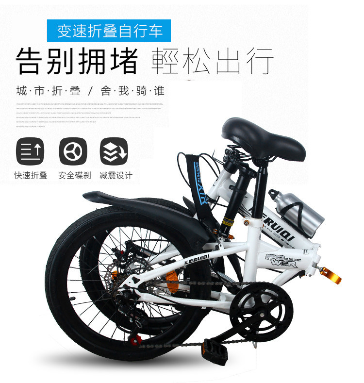 折叠自行车20寸变速碟刹减震超轻便携青少年男女式学生成人单车