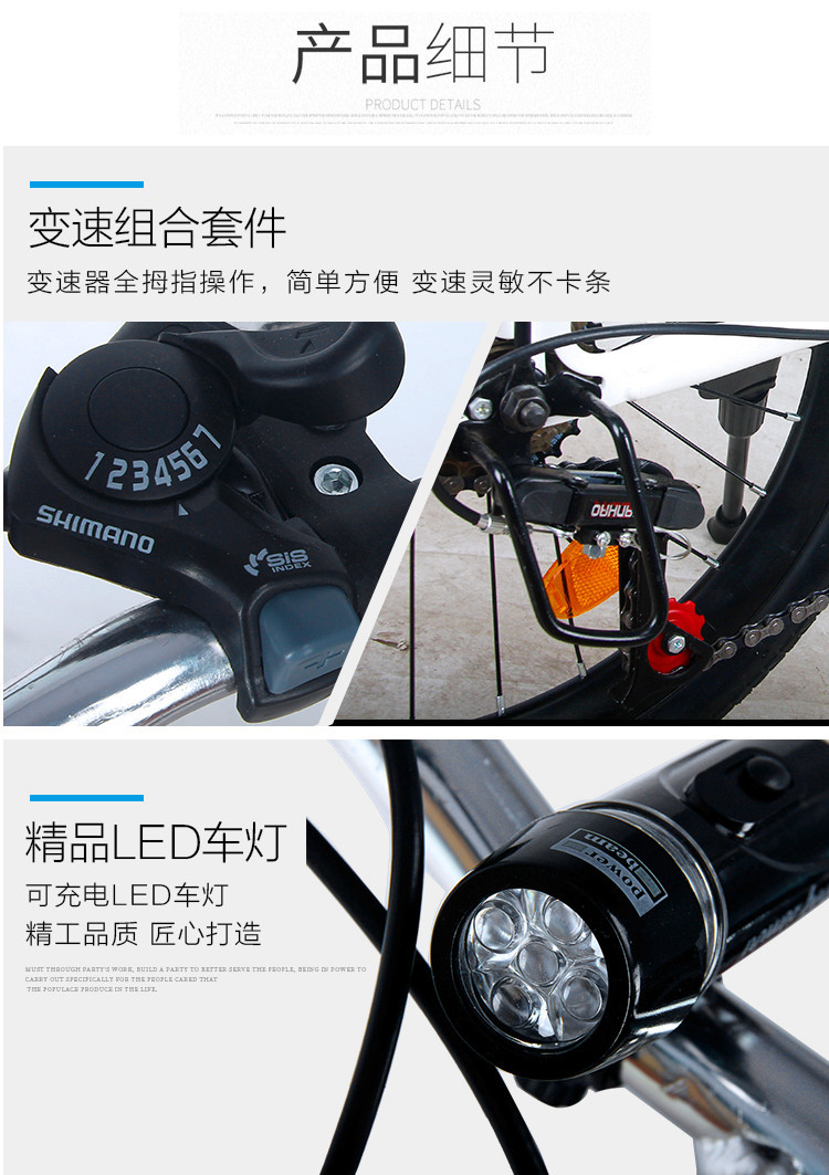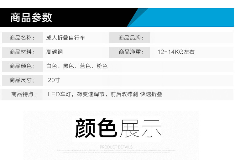 标配款变速双碟刹,Ding配款变速双碟刹,斜梁款单速抱刹。型号:20英寸。颜色:黑色,白色,蓝色,粉色