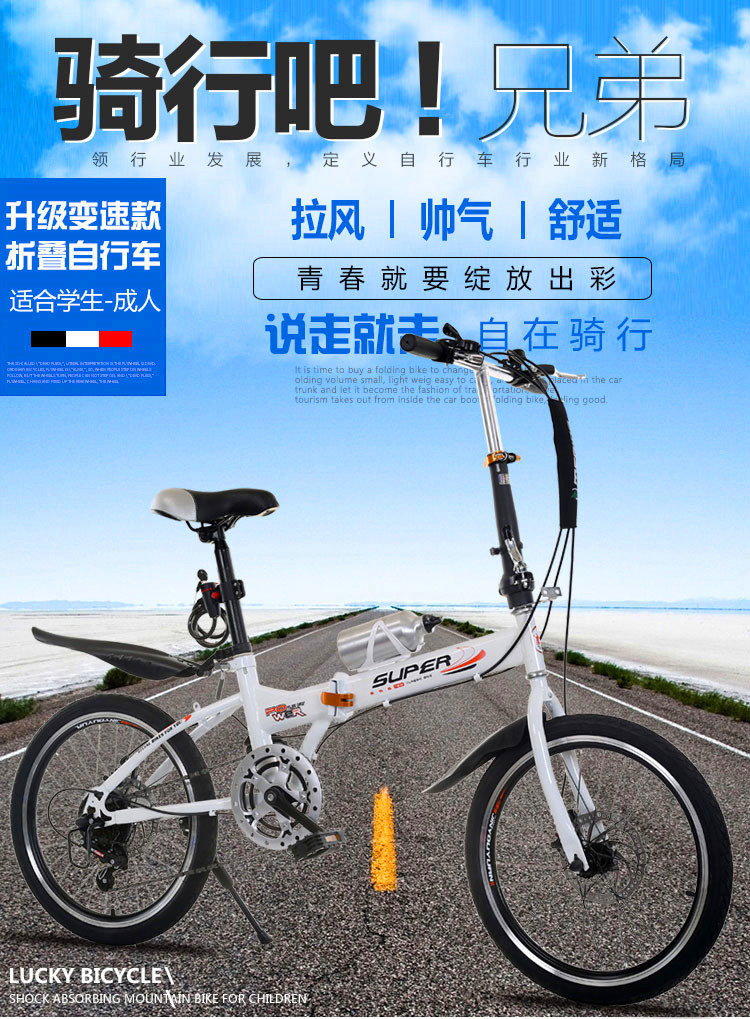 20寸折叠自行车学生车成人自行车折叠脚蹬碟刹变速自行车男女式
