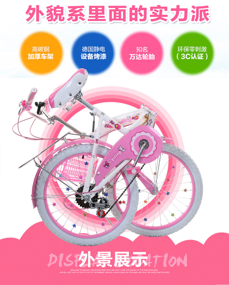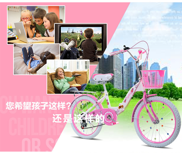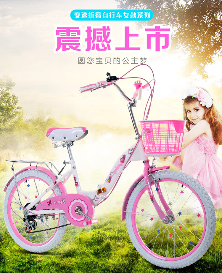 儿童折叠自行车 单速变速女式公主款16寸18寸20寸22寸山地童车厂