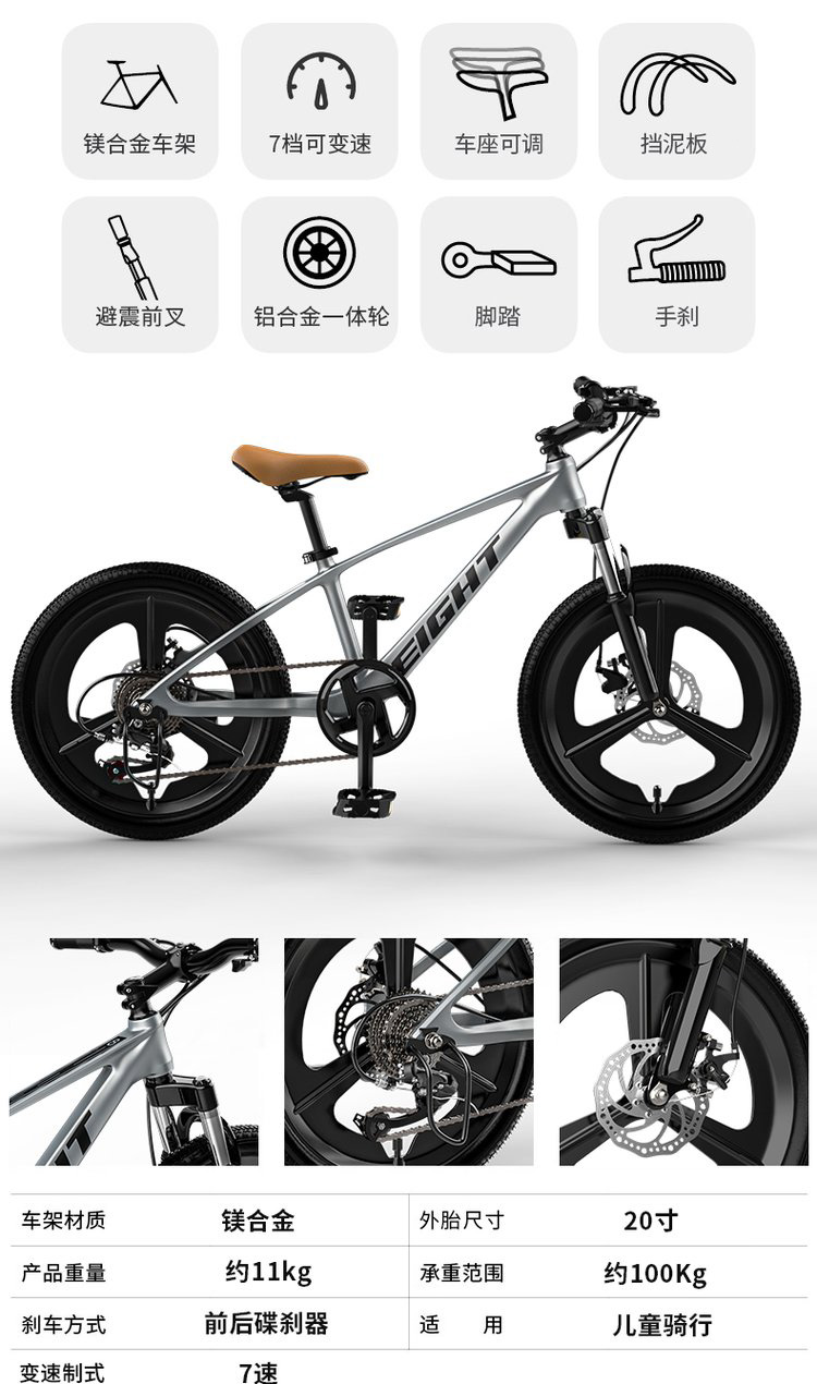 镁合金儿童自行车大童男女孩8-14岁20寸学生脚踏双碟刹变速山地车