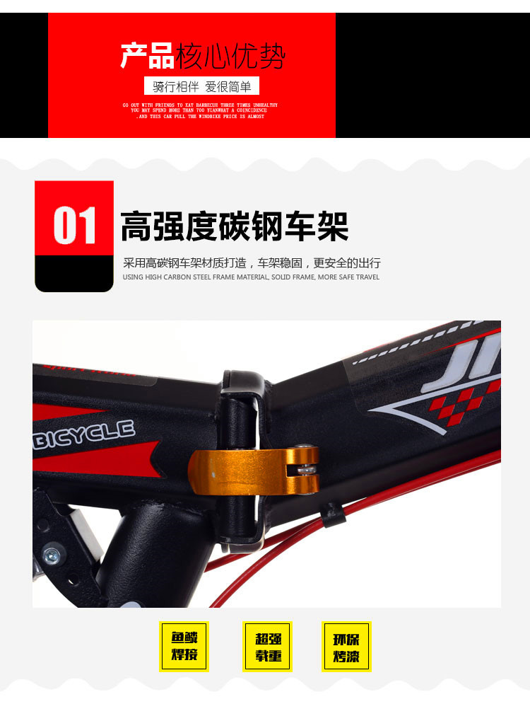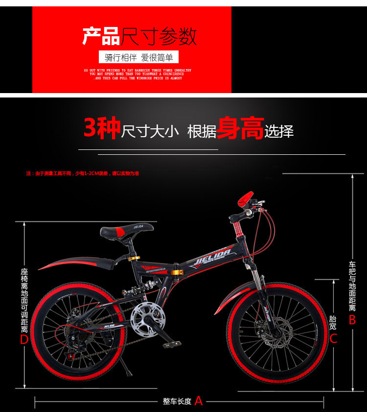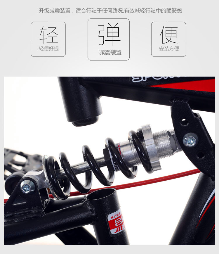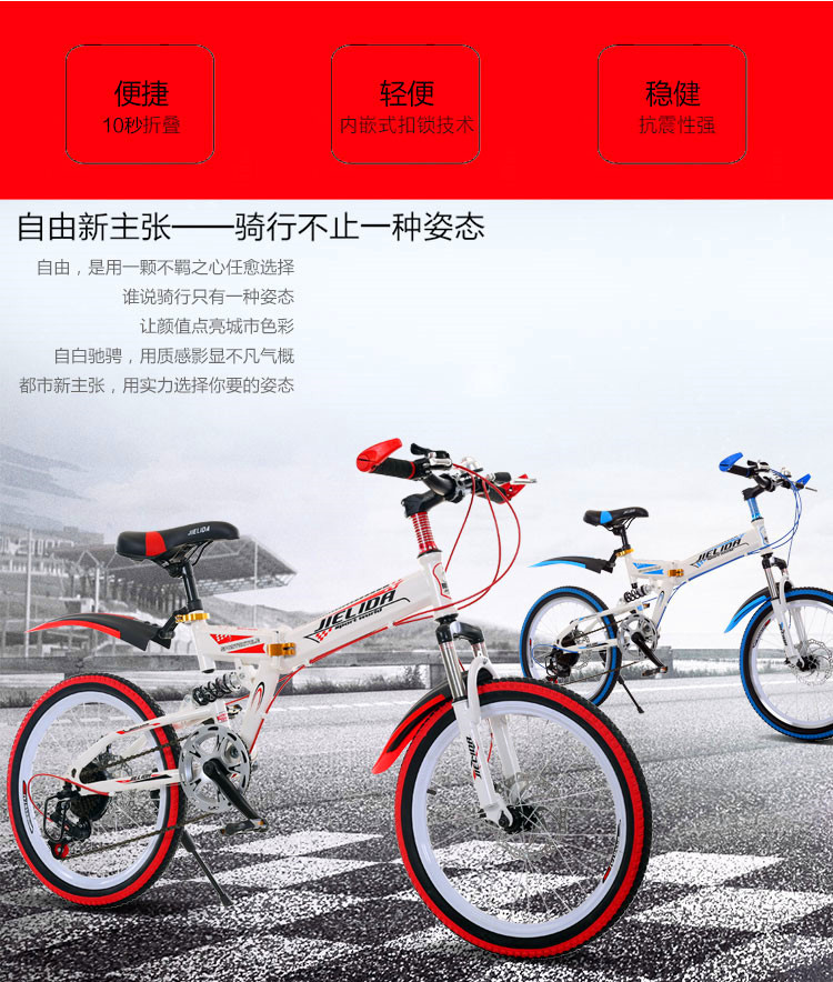 一体轮变速折叠减震款20寸,变速折叠减震款20寸,变速折叠减震款22寸,低配促销款。颜色:黑红色,黑蓝色