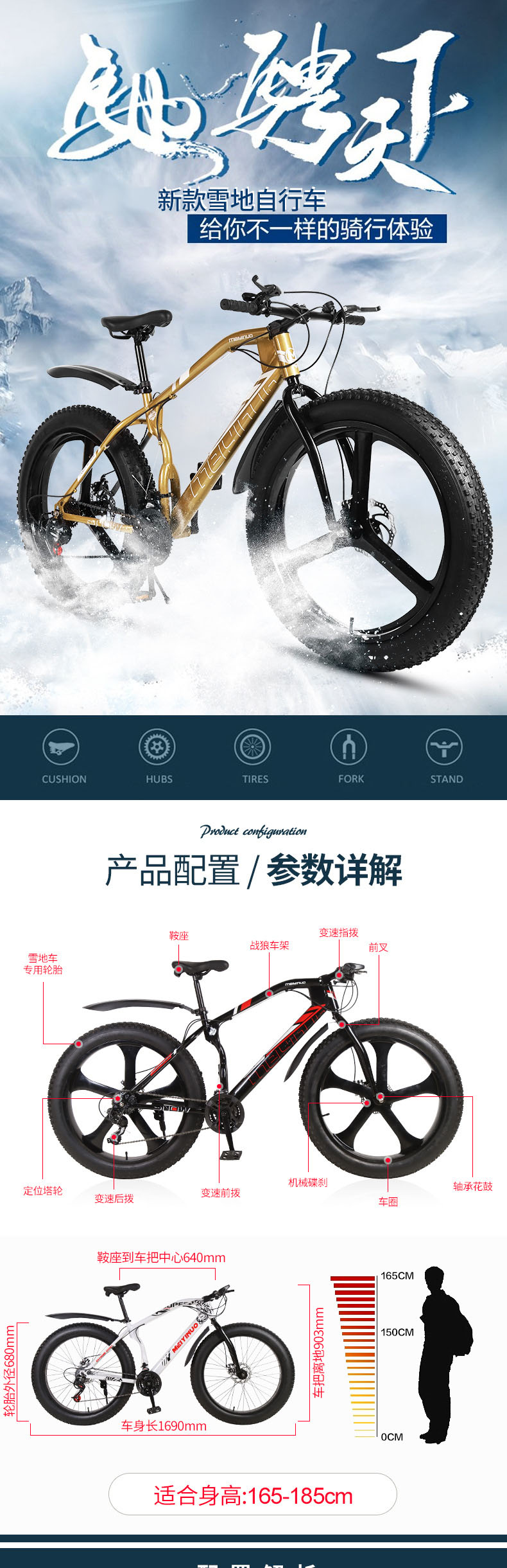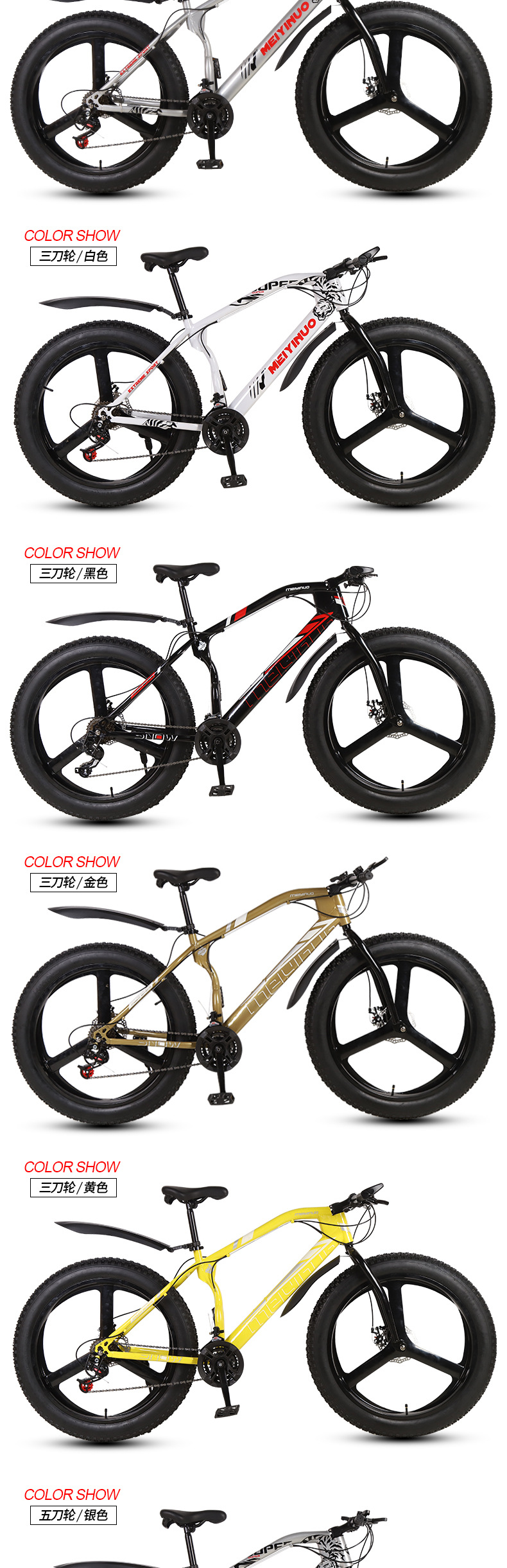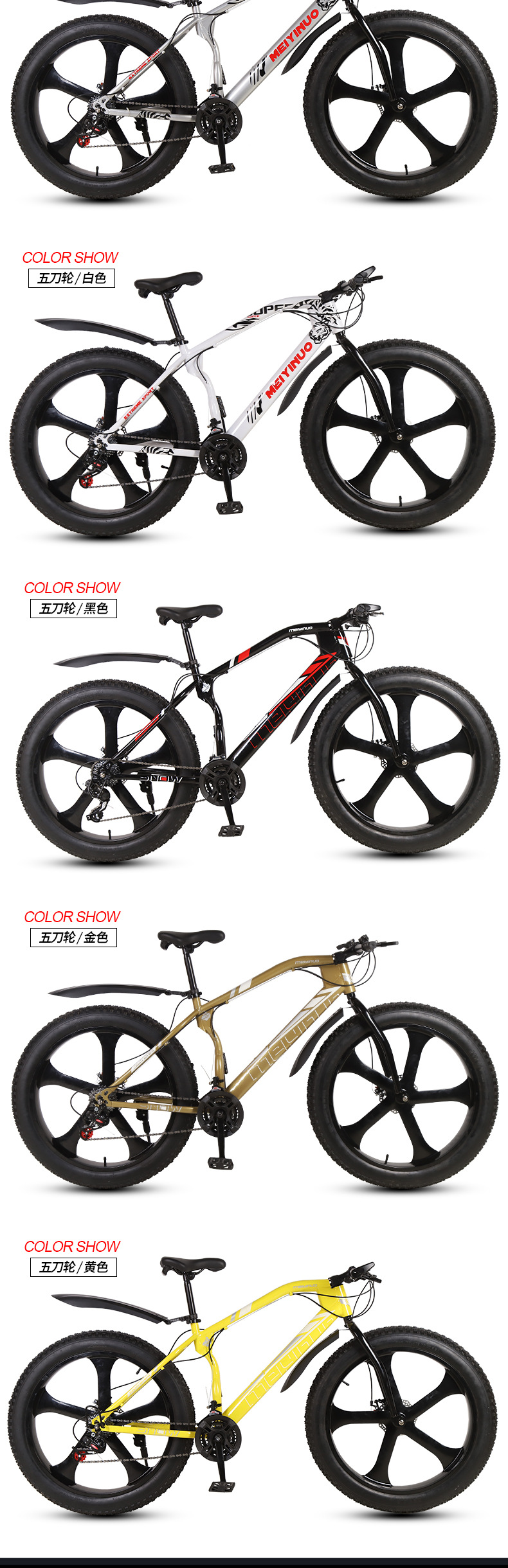 厂家供应雪地车沙滩车26寸双碟刹宽胎越野变速车自行车成人山地车