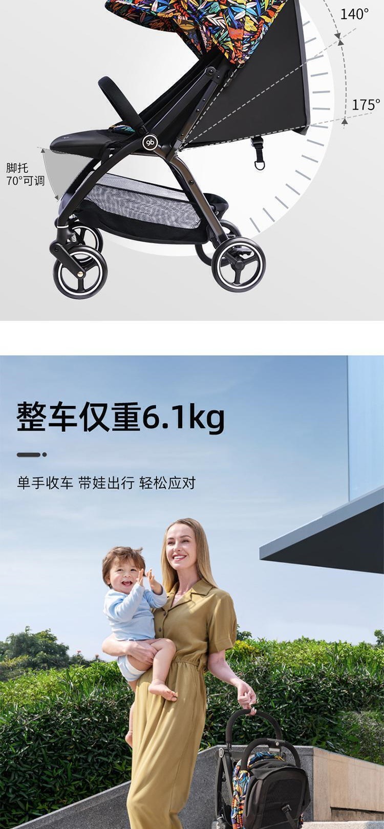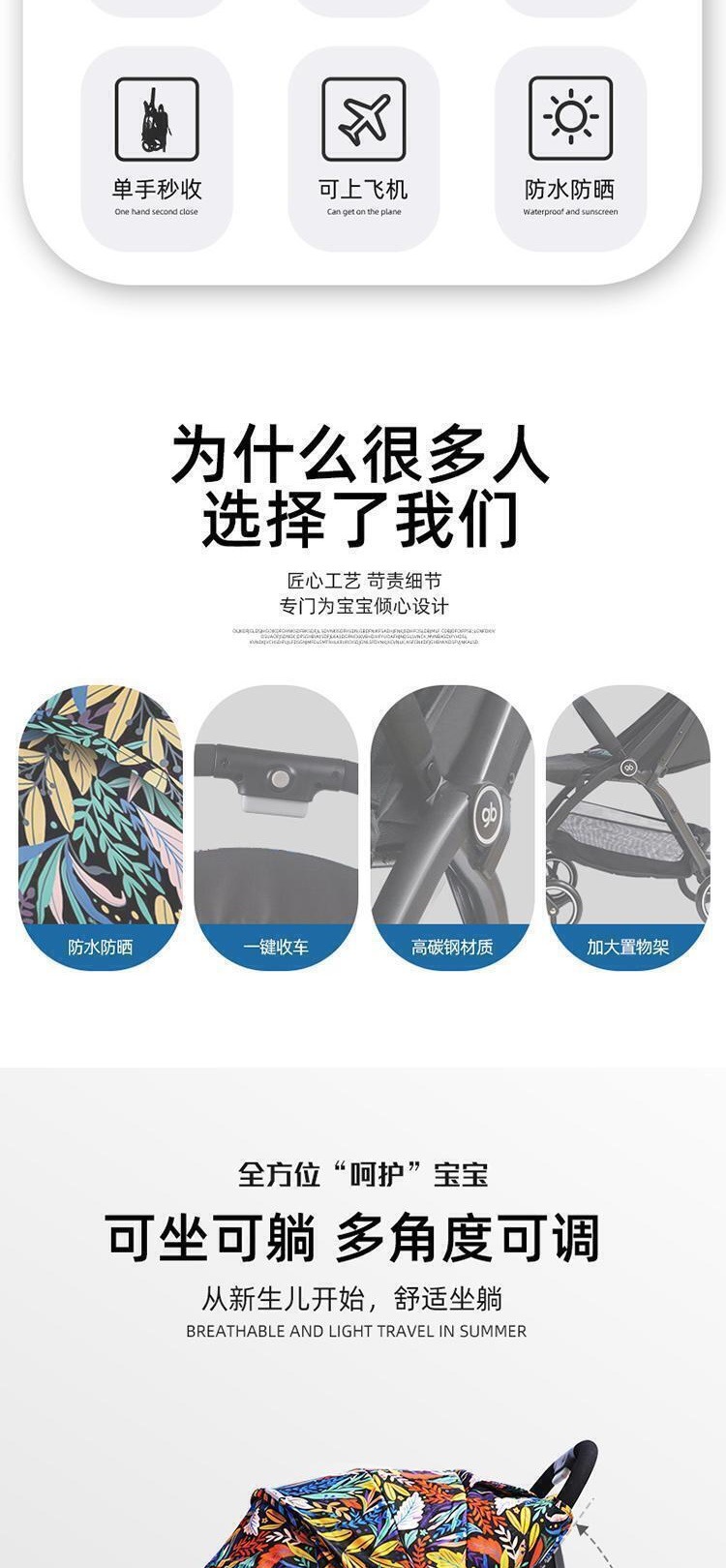 婴儿推车伞车婴儿手推车一键折叠车轻便折叠车推车可躺可坐