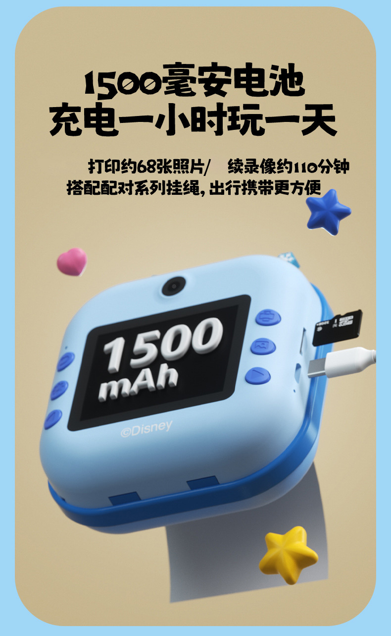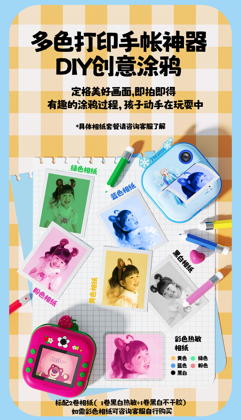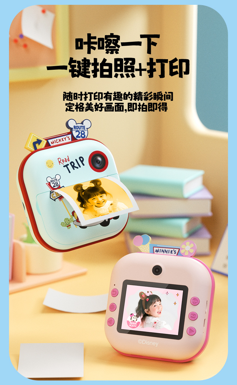 迪士尼高清儿童方块打印相机 儿童拍立得彩纸打印迷你照相机