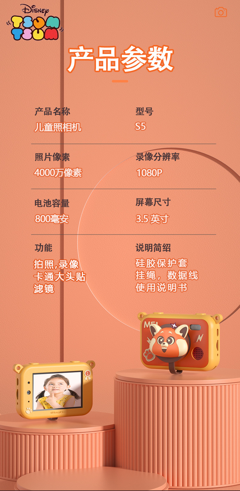 Disney/迪士尼 高清拍照录像双摄美美 S5儿童相机 高清拍照录像双