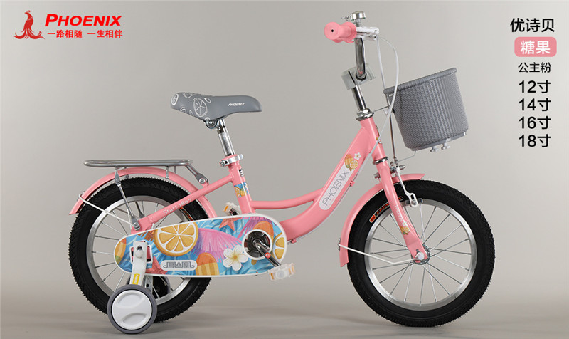 凤凰儿童自行车12/14/16/18寸中大童女孩3-8岁公主车宝宝脚踏单车