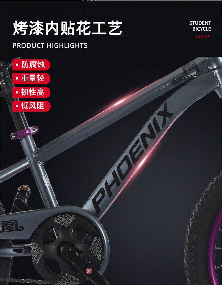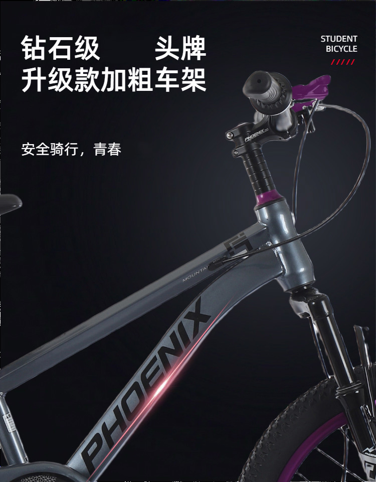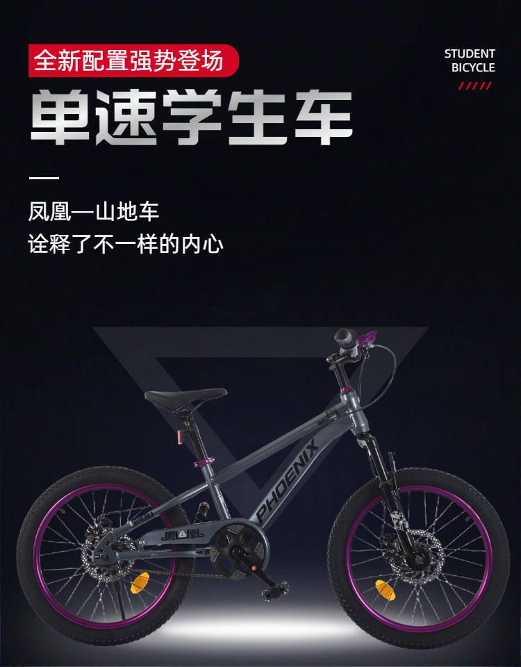 凤凰儿童自行车男孩女孩6-18岁碟刹单速山地脚踏车小学生车山地车