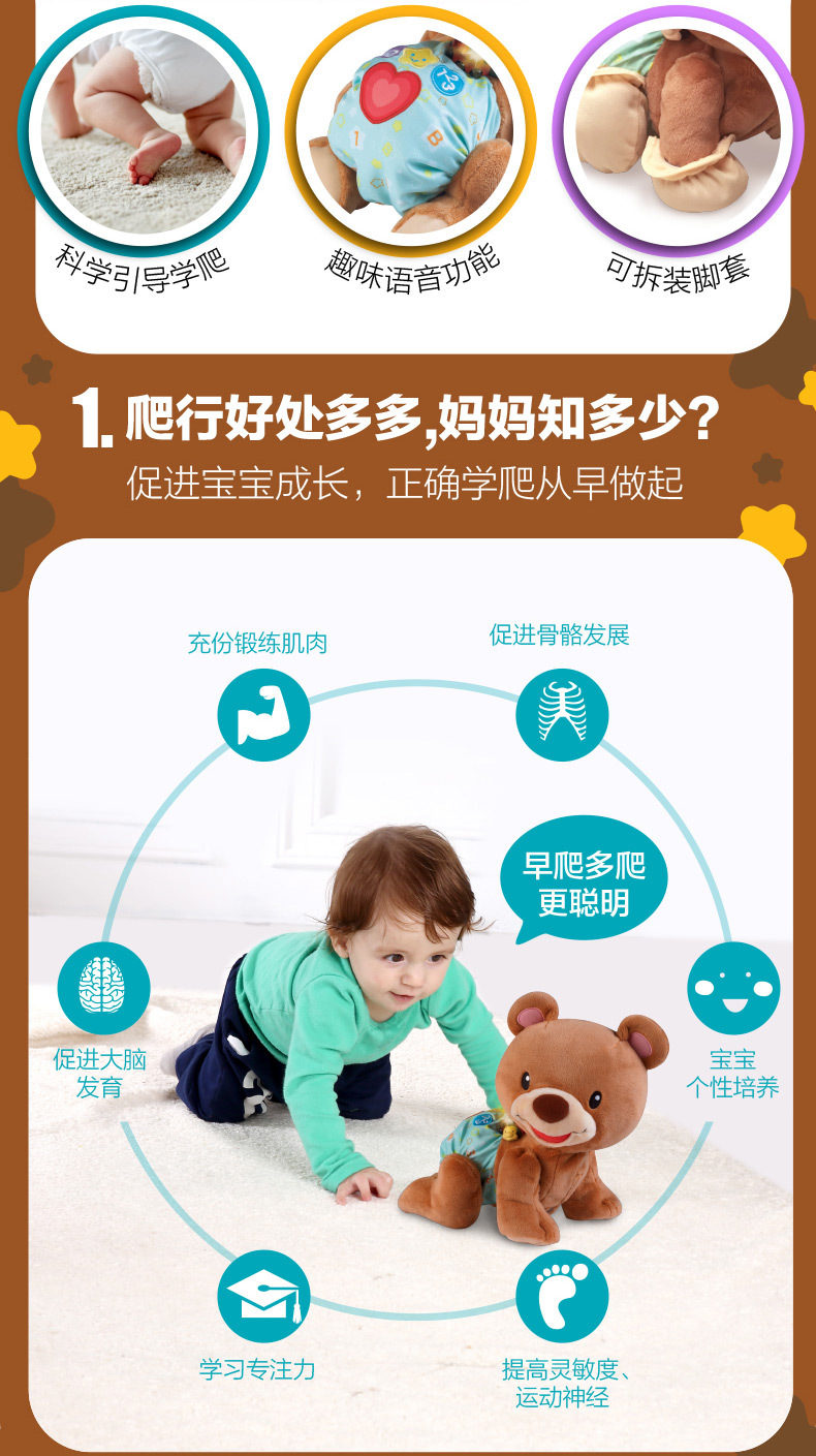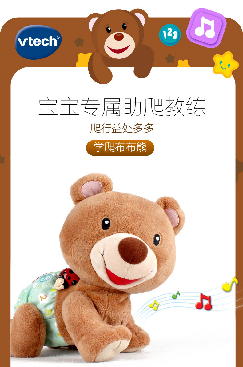 VTech伟易达学爬布布熊转转球婴幼儿学步玩具宝宝学爬行玩偶