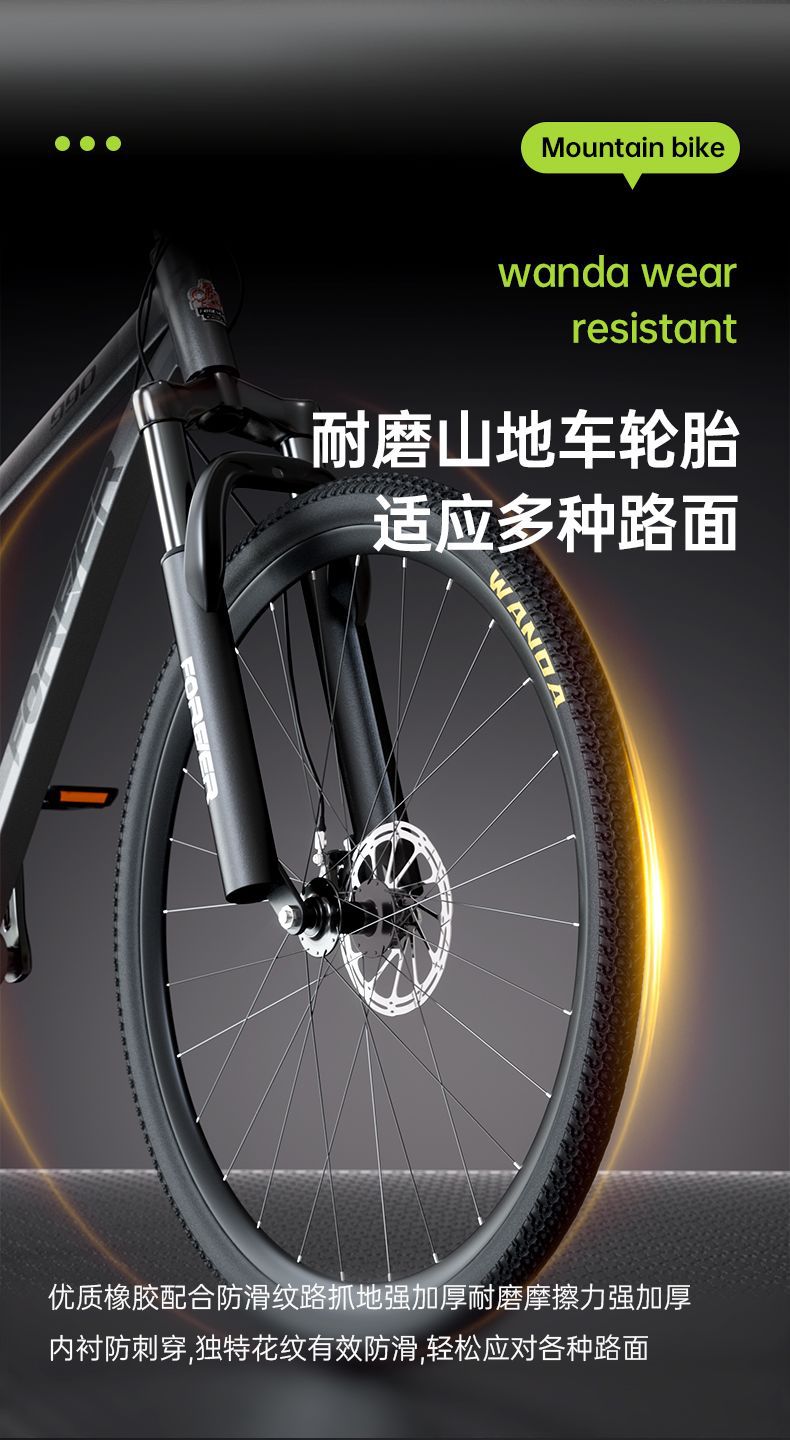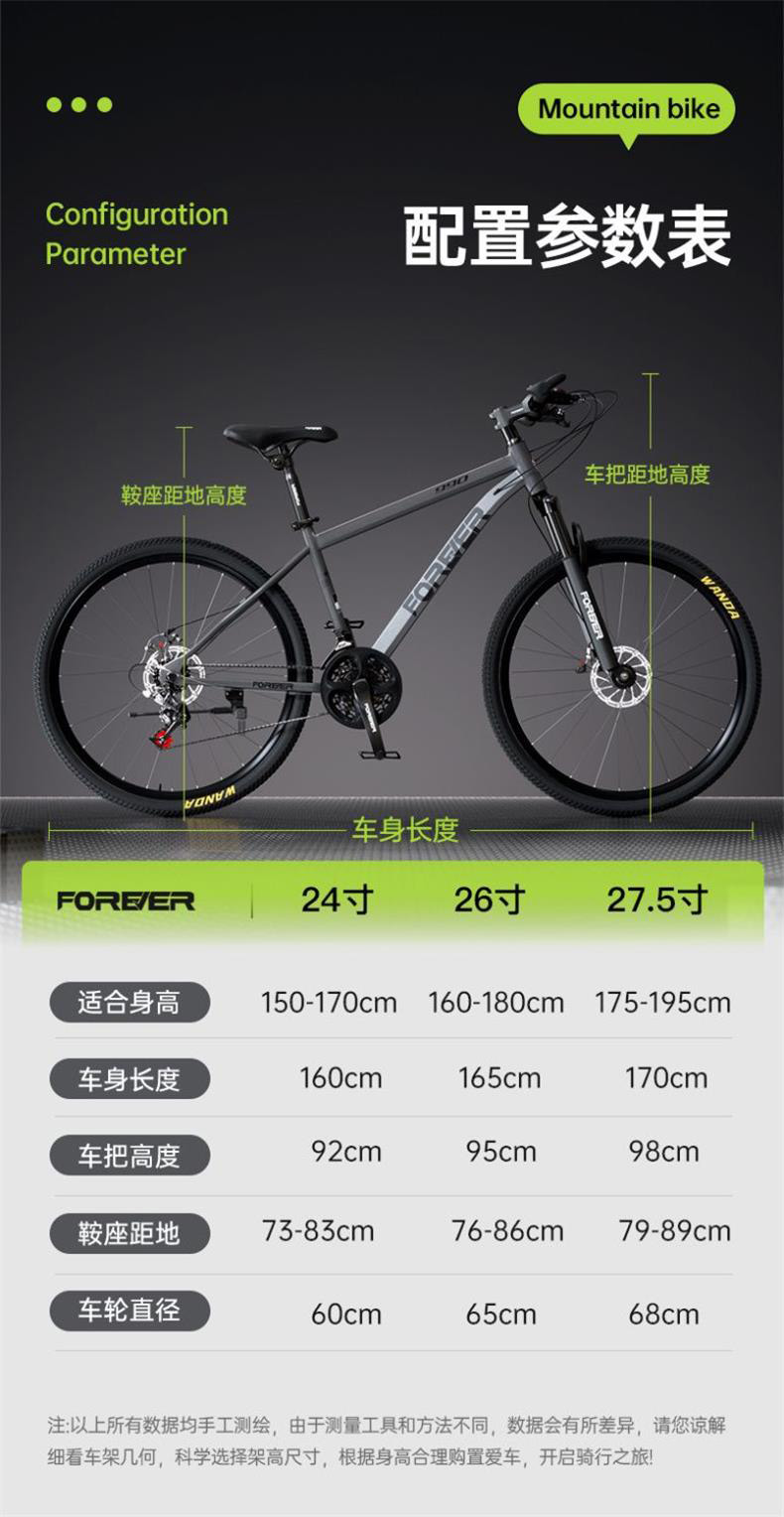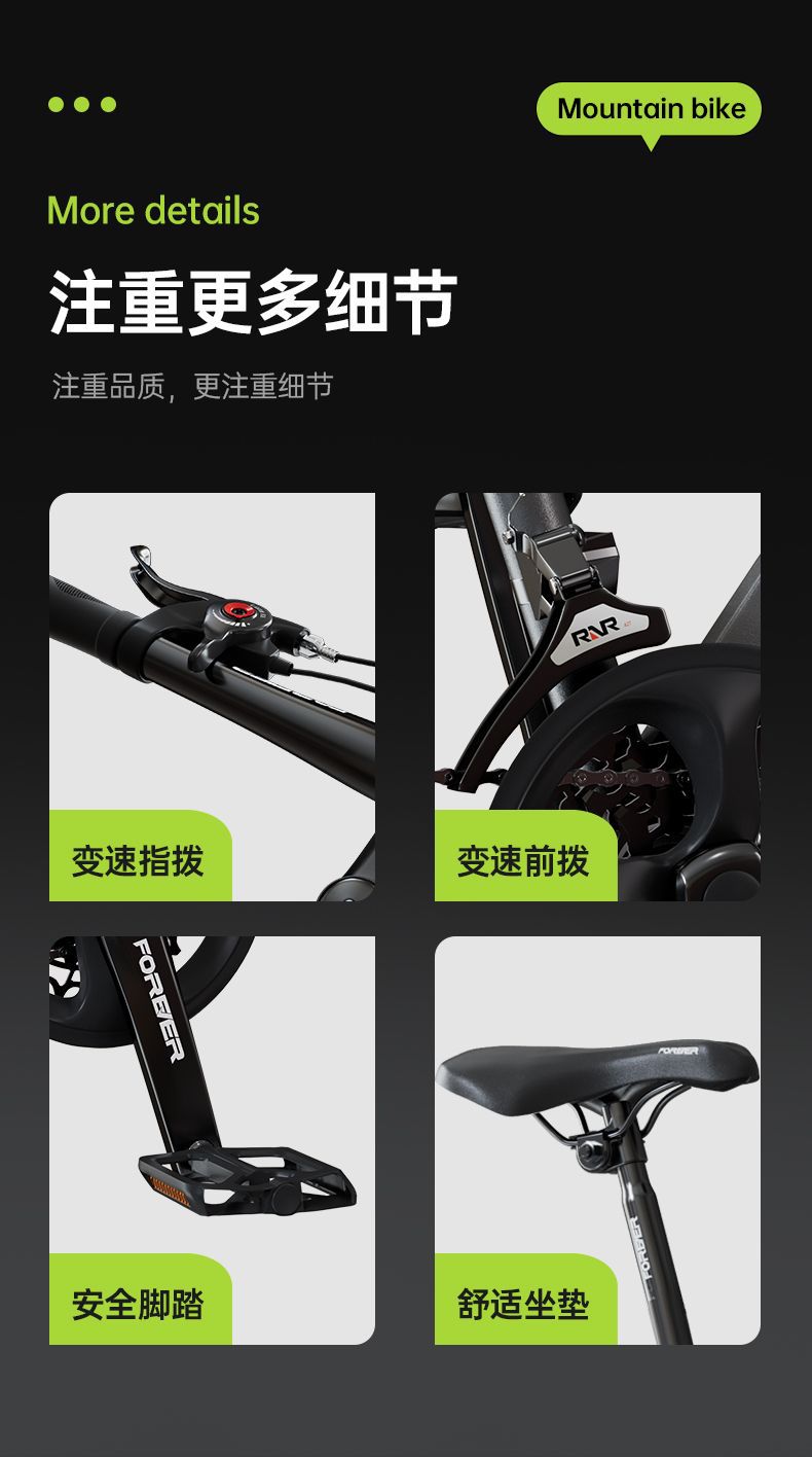 材质:高碳钢 车架类型:硬车架刹车类型:前后轮V闸前叉类型:弹簧叉(低档无阻尼) 配置等级:迷你型载重量:70kg 制动系统:前后线碟刹脚踏类型:普通脚踏 轮圈材质:铁质适用性别:男女通用 速别:18速适用人群:通用