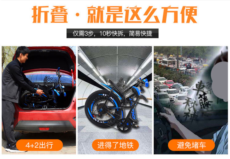 20寸折叠变速碟刹自行车折叠车 双碟刹7速定位变速车男女式山地车