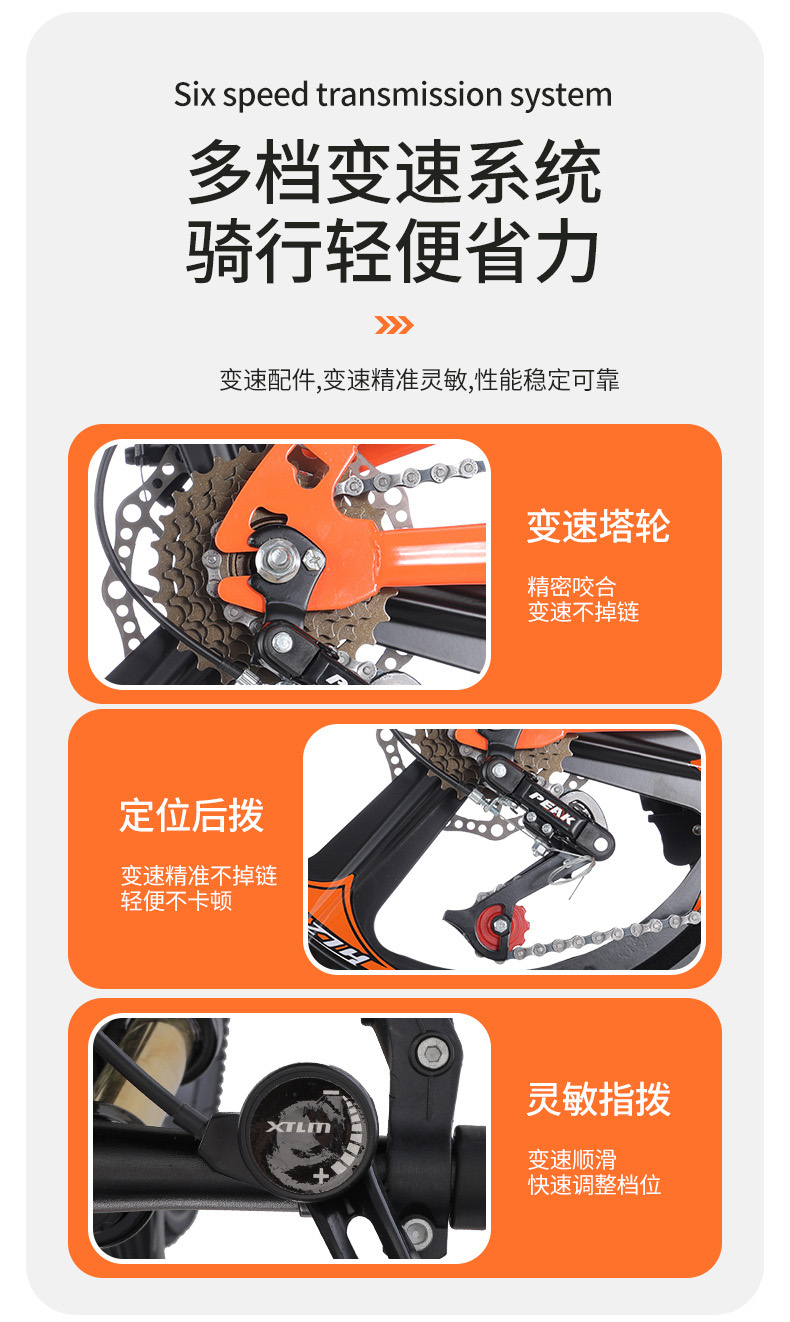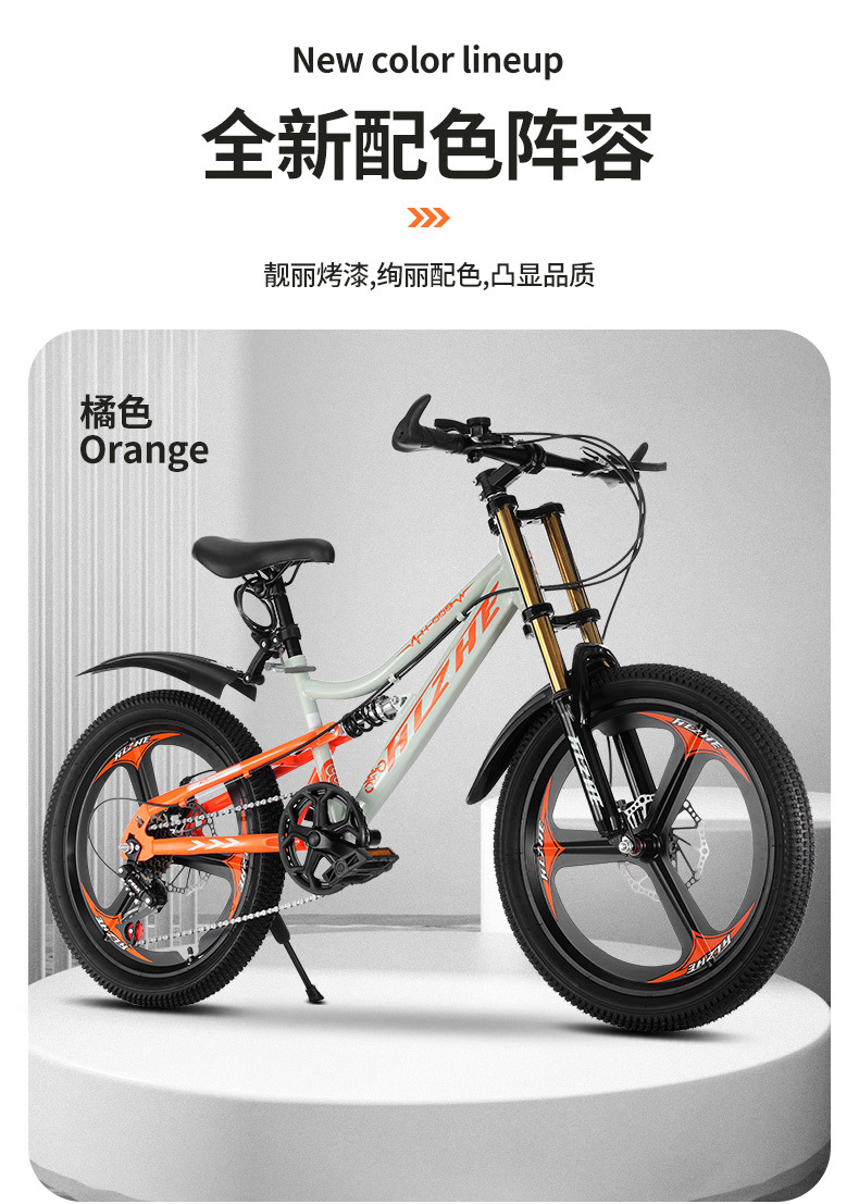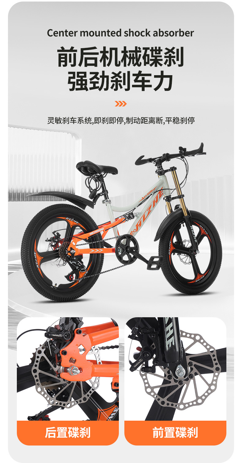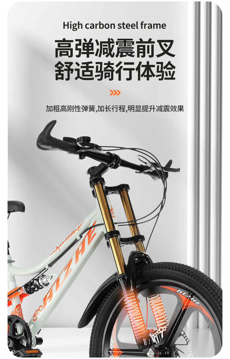 材质:碳钢车车架结构:整体车推进模式:链条载重量:100kg车架类型:硬车架前叉类型:弹簧叉(低档无阻尼)脚踏类型:普通脚踏制动系统:双碟刹刹车类型:后轮碟刹配置等级:标准型样式:双减震