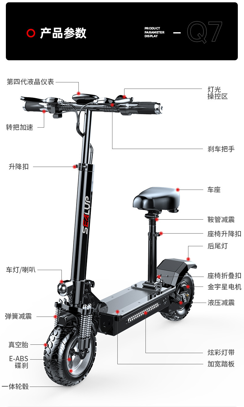 Q5/36V朝阳真空胎/金宇星电机/【30-35km/35-50km/50-60km/70-80km/100-115km。Q7/48V/彩屏仪表/越野防爆真空胎/40-50km,Q7/48V/宽屏转把