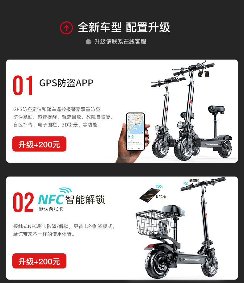 大功率代驾代步车48v1000w折叠电动车双驱越野电动滑板车