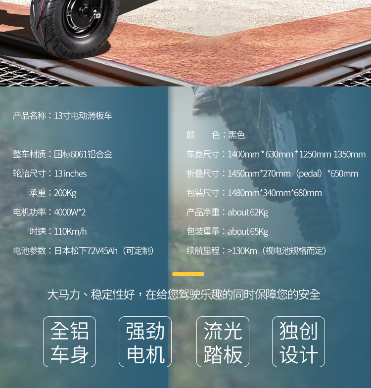 14寸13寸11寸越野高速大功率电动滑板车LED氛围灯
