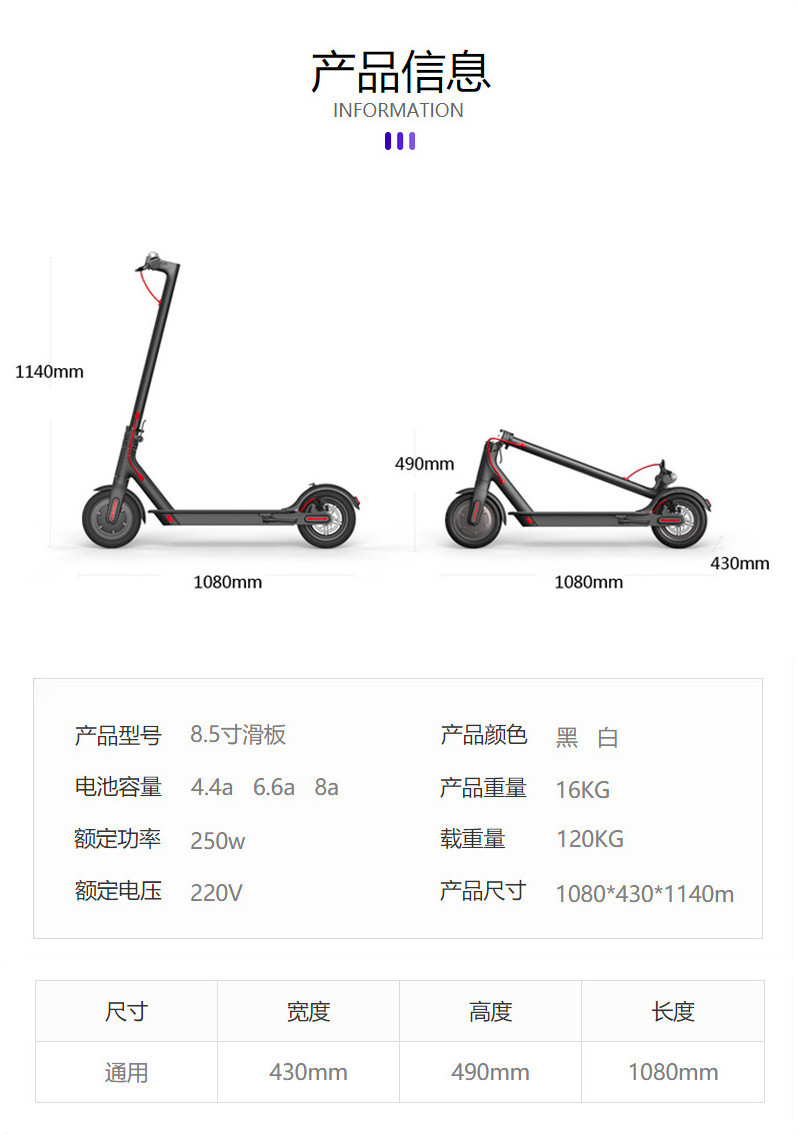 小米同款8.5寸电动滑板车成人两轮折叠电动共享代步车