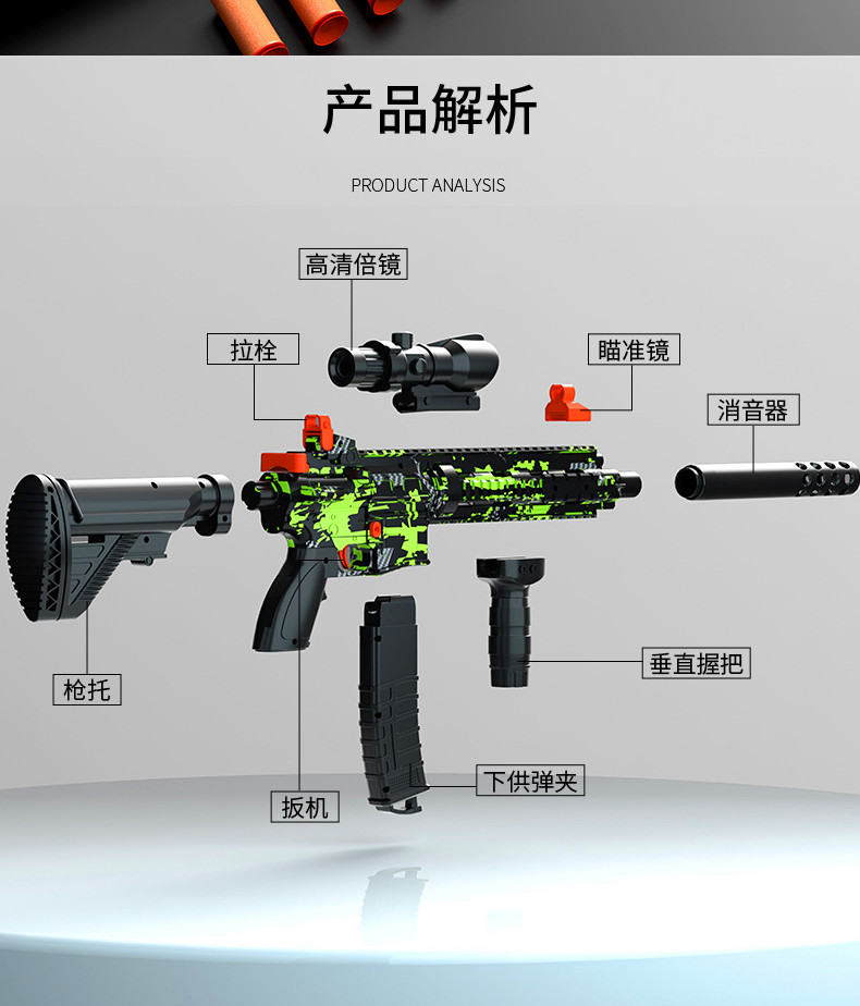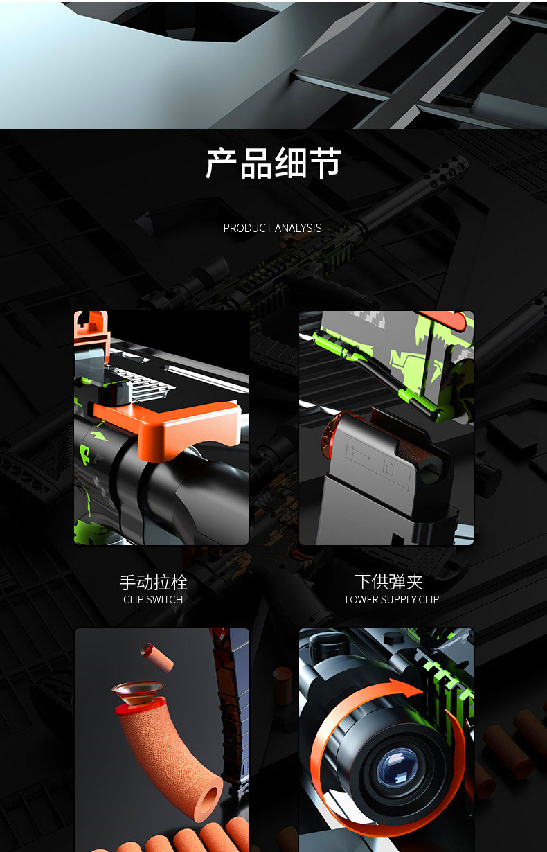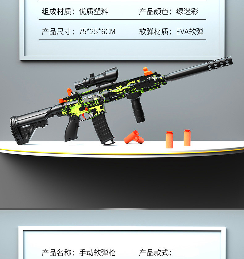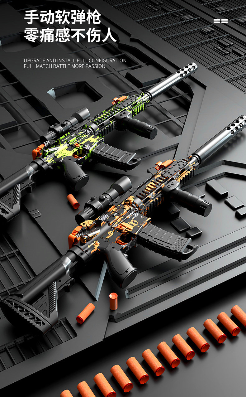 软弹手动连发可发射抖音同款吃鸡冲锋机关枪突击抢儿童玩具枪