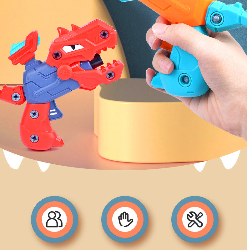 拆装恐龙软弹枪 拼装儿童玩具户外对战射击玩具