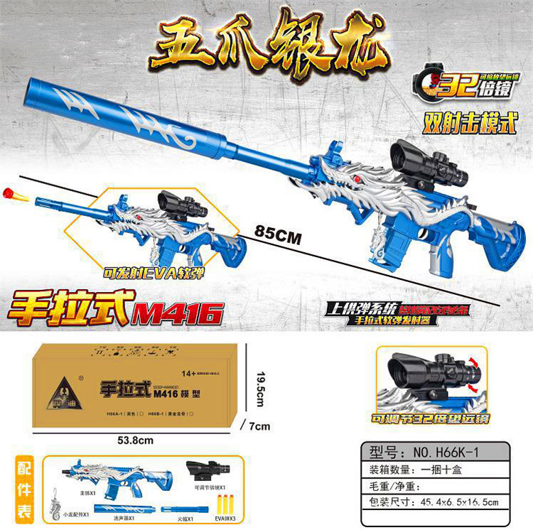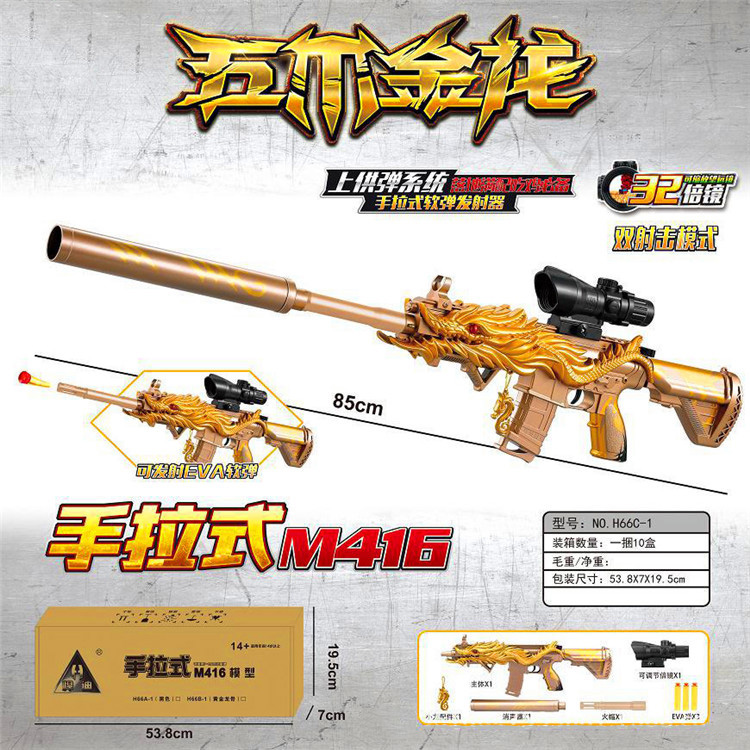 五爪金龙手拉软弹枪突击步枪皮肤版m416吃鸡装备男孩玩具枪