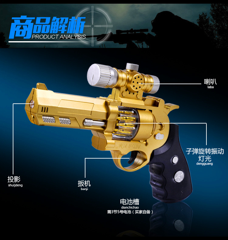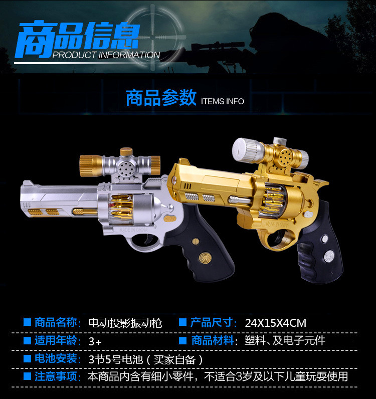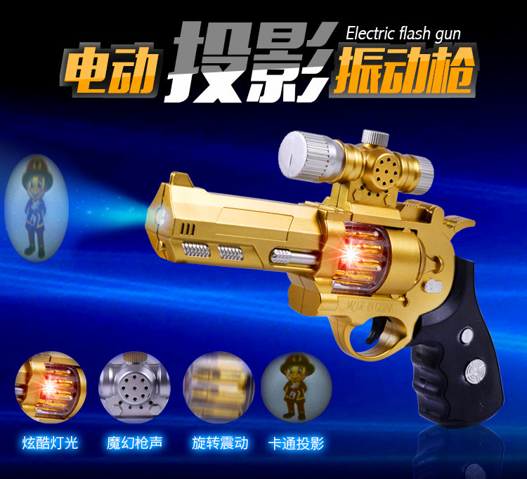 声光塑料玩具枪男孩投影枪八音手枪玩具 儿童发光振动电动枪