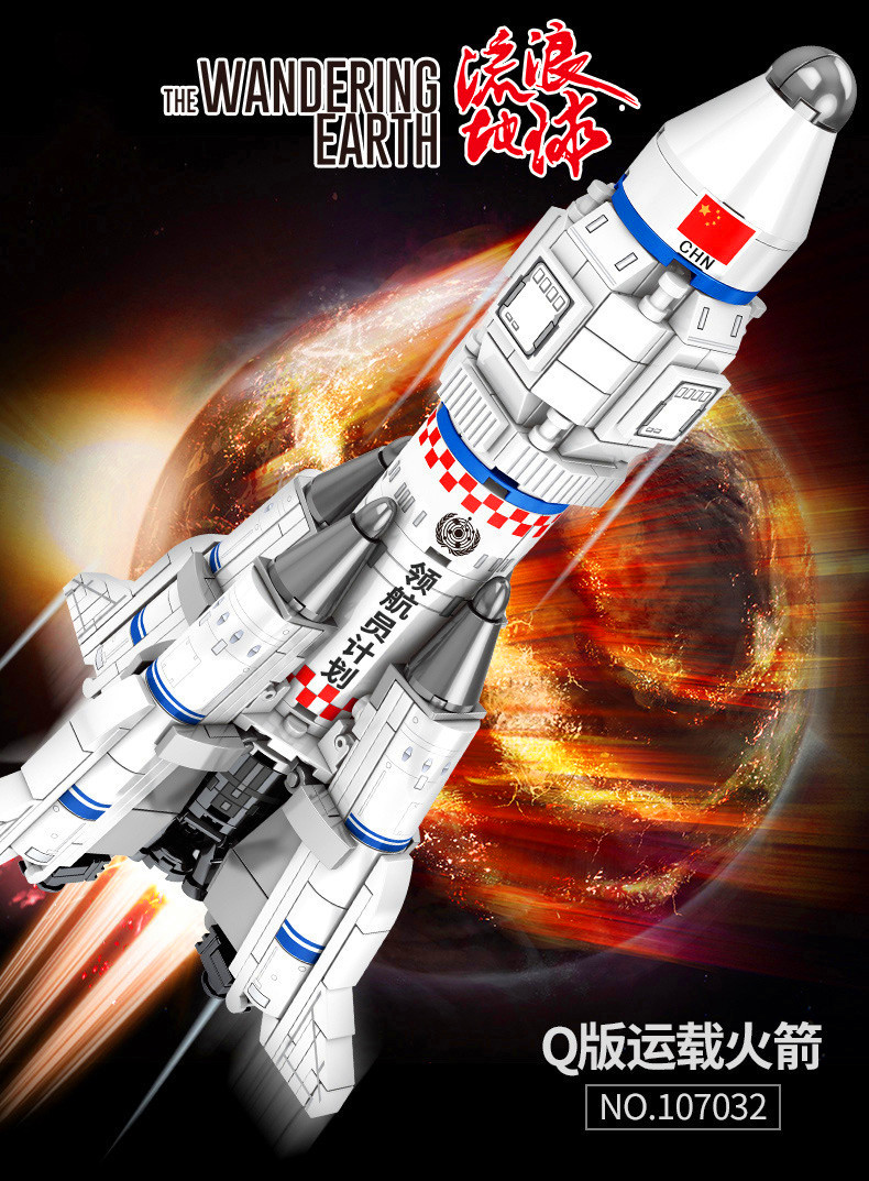 107032流浪地球系列Q版模型摆件宇宙飞船拼装小颗粒积木玩具