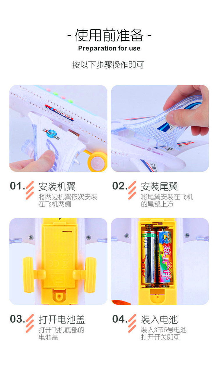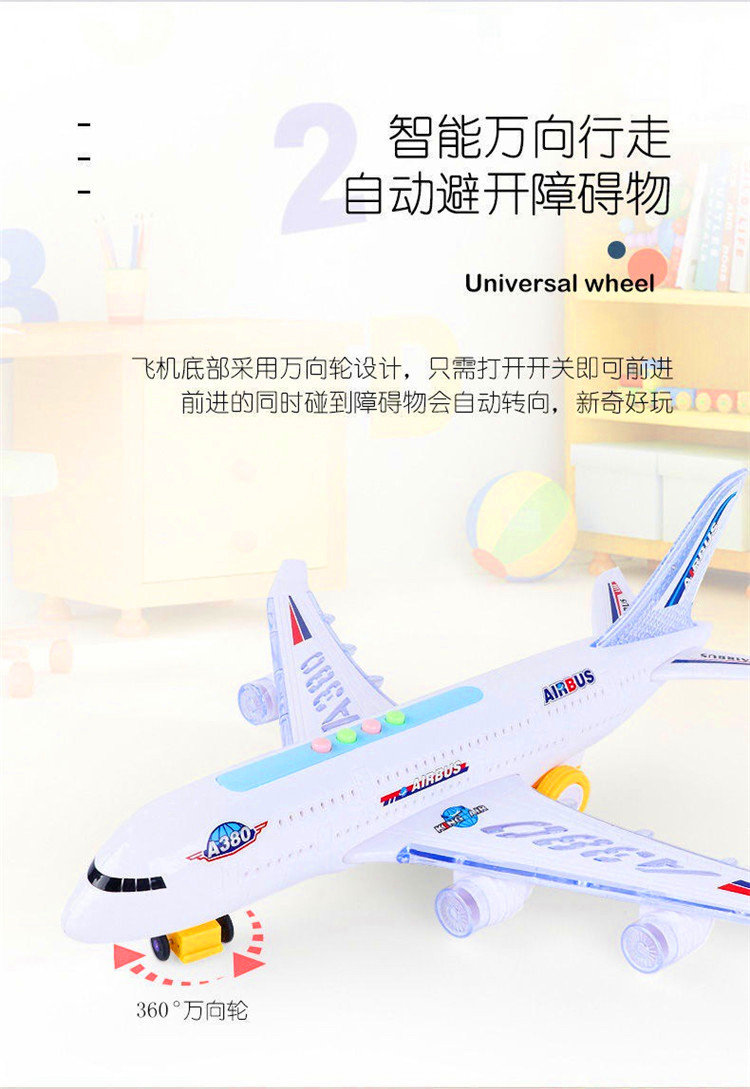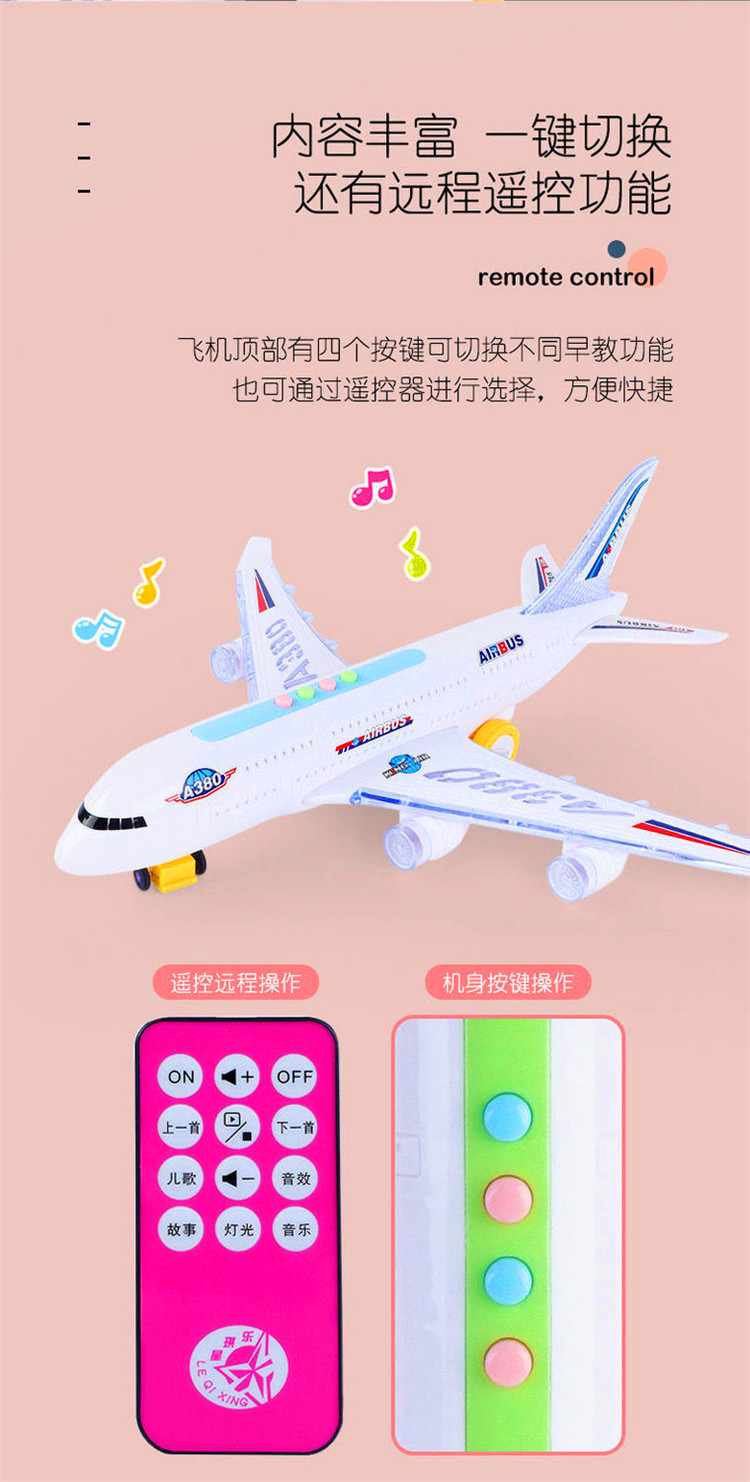 儿童电动万向行走声光遥控早教空中客机飞机模型音乐灯光男孩玩具