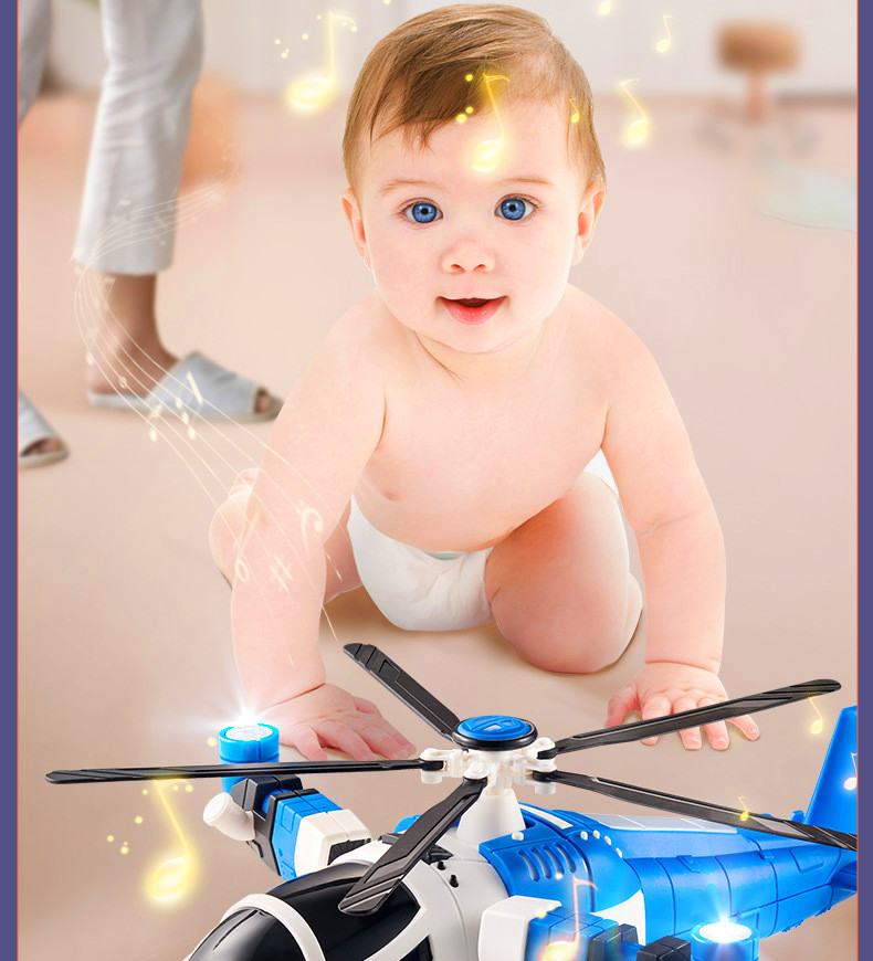 儿童电动武装战斗机 变形飞机玩具万向轮直升机360度旋转声光音乐