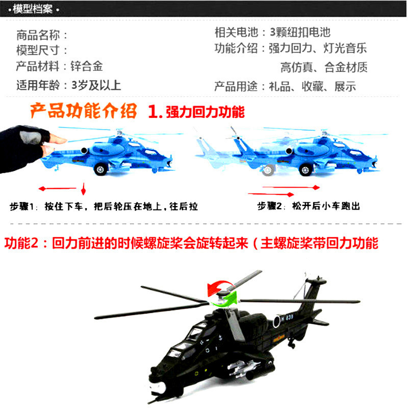 武直10飞机模型武装直升机十仿真金属战斗机合金回力声光儿童玩具
