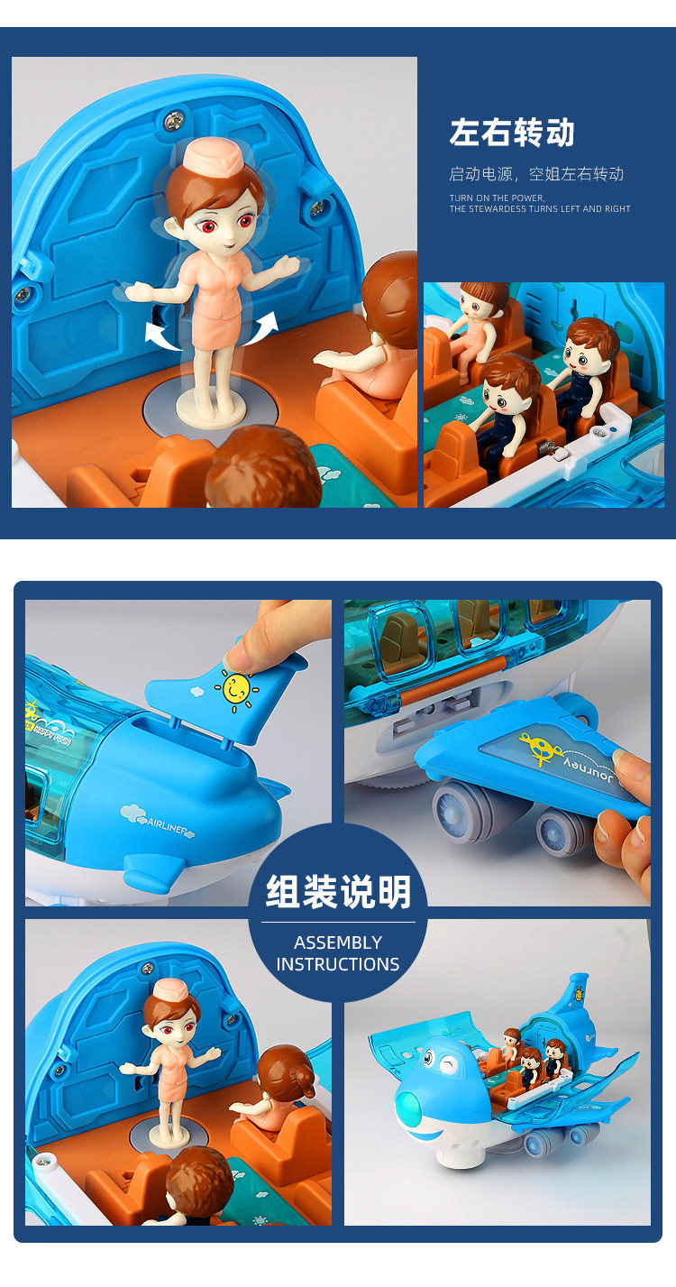大号电动万向Q萌客机仿真模型音乐灯光360旋转儿童电动玩具飞机