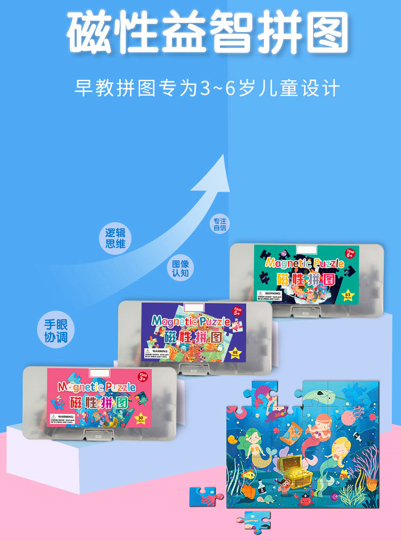 三合一纸质磁吸立体画板儿童磁性拼图木质写字板盒装玩具拼图