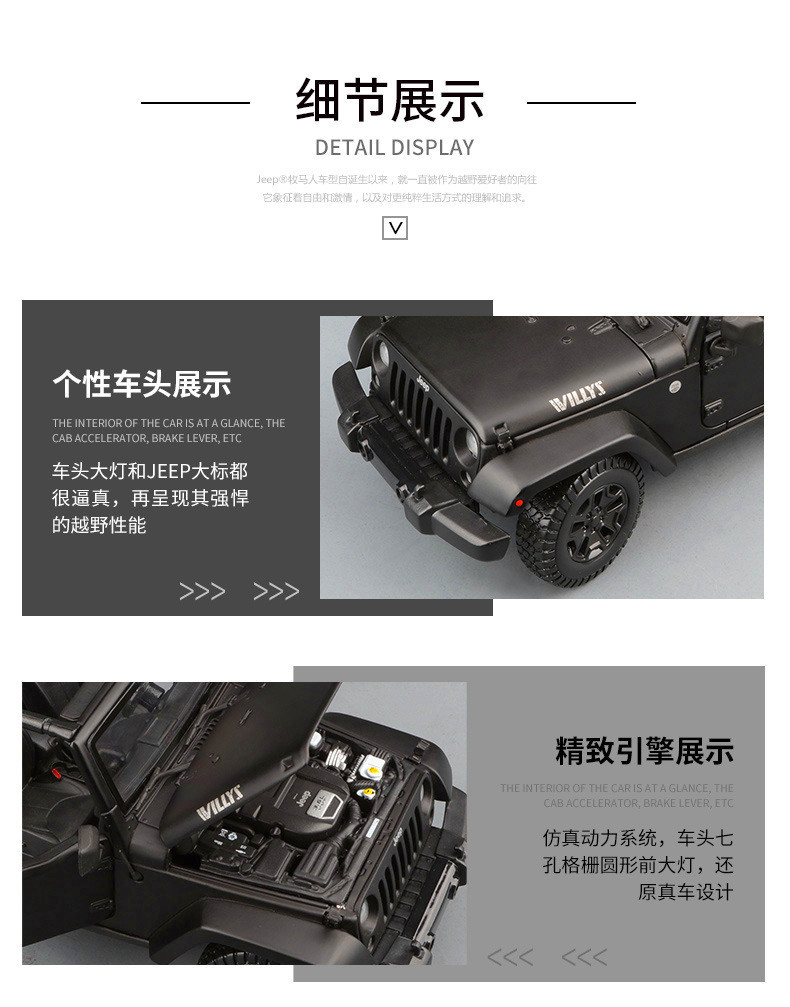 模仿真合金汽车模型摆件男孩玩具1:18吉普越野车