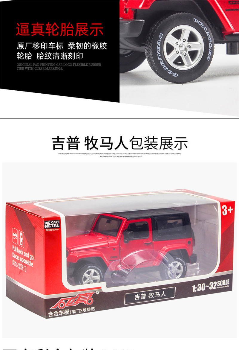 合金汽车模型摆件儿童仿真回力玩具车澄海玩具JEEP吉普牧马人