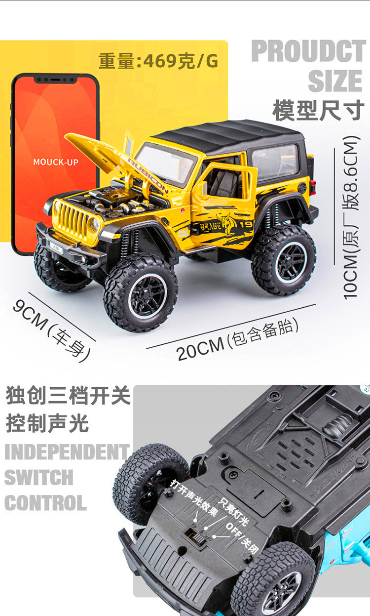 1:20仿真JEEP吉普牧马人车模型越野车合金玩具车男孩模型玩具