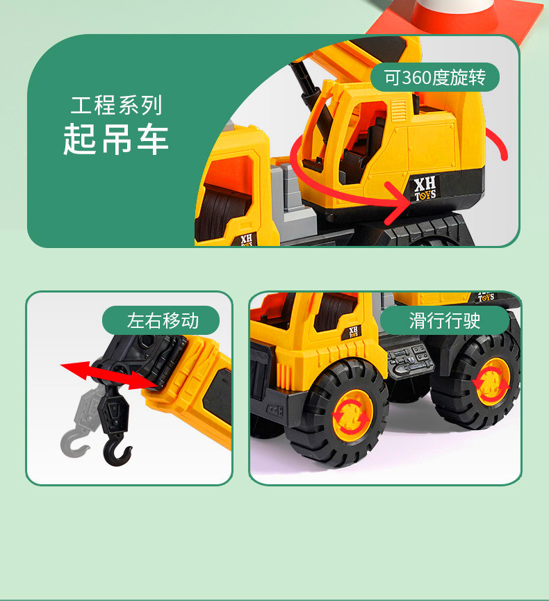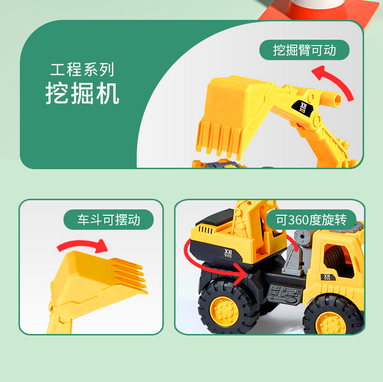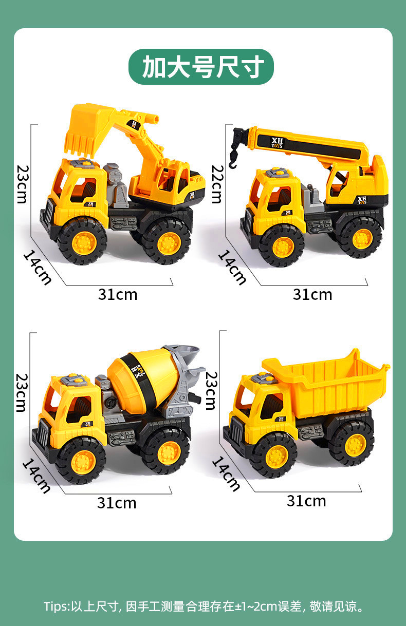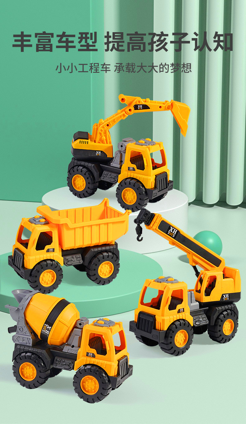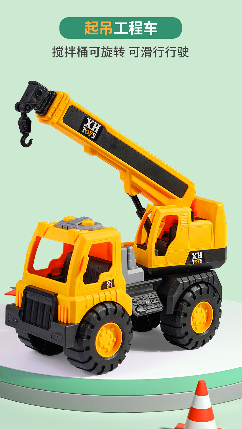 儿童大号仿真车模型翻斗搅拌起吊挖掘惯性工程车玩具套装