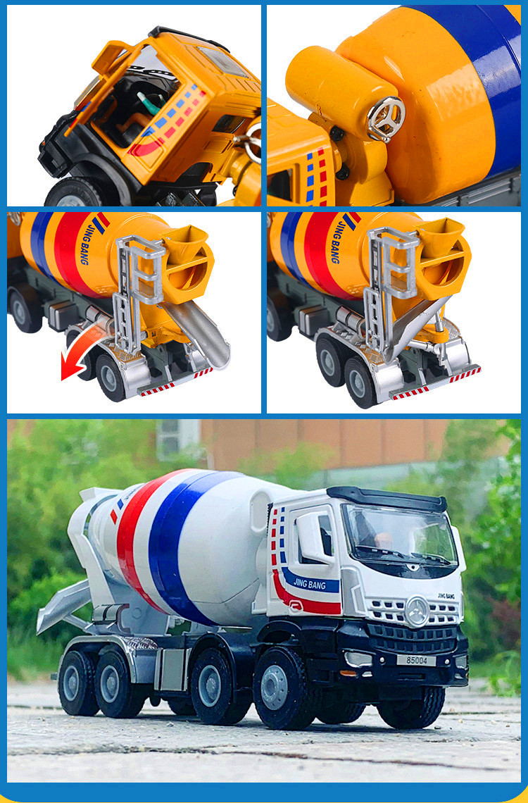 混凝土搅拌机模型仿真滑行玩具盒装1/50大号合金工程车