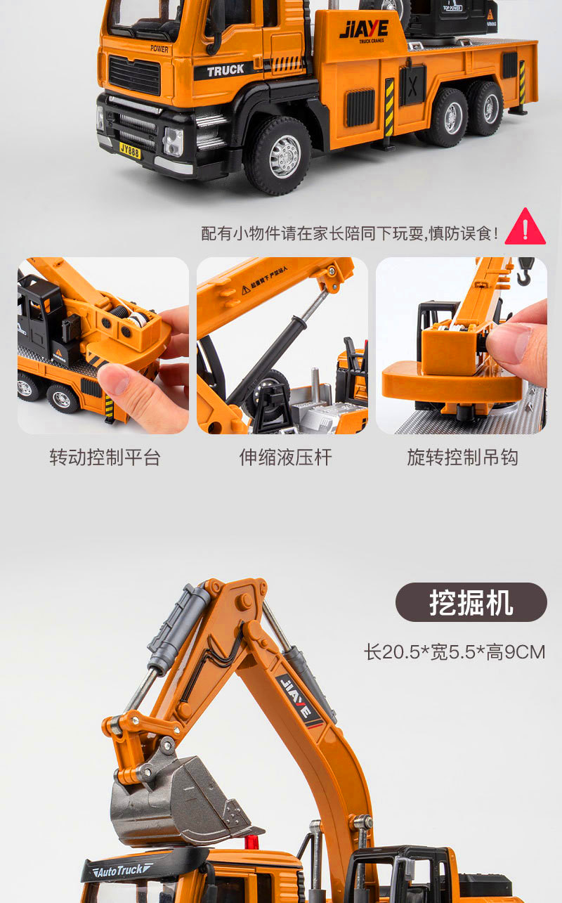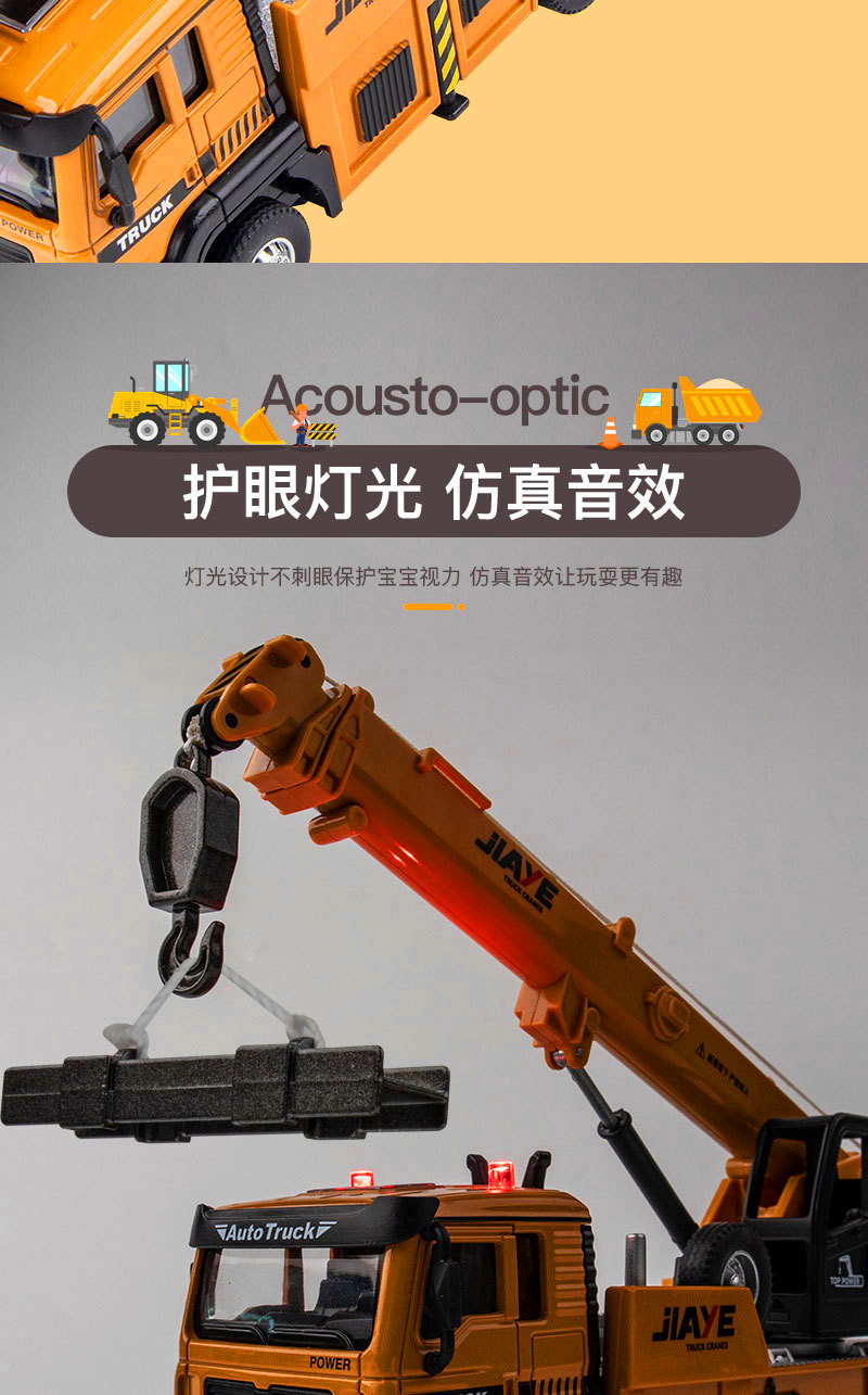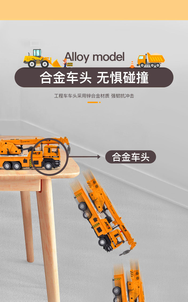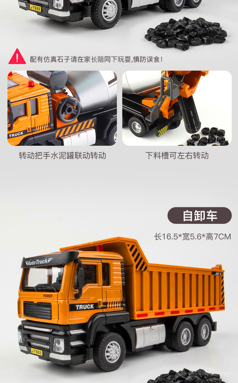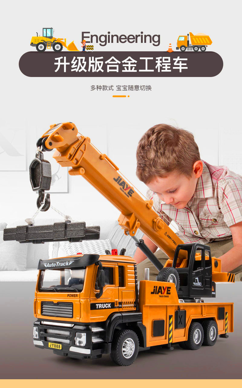 1/50仿真合金工程吊车翻斗车挖掘机回力声光儿童玩具摆件