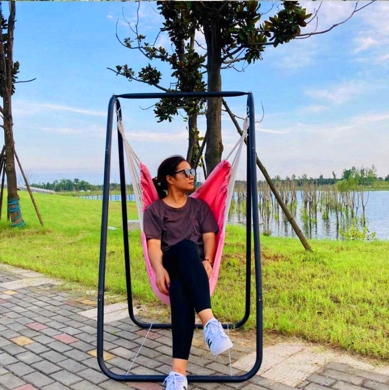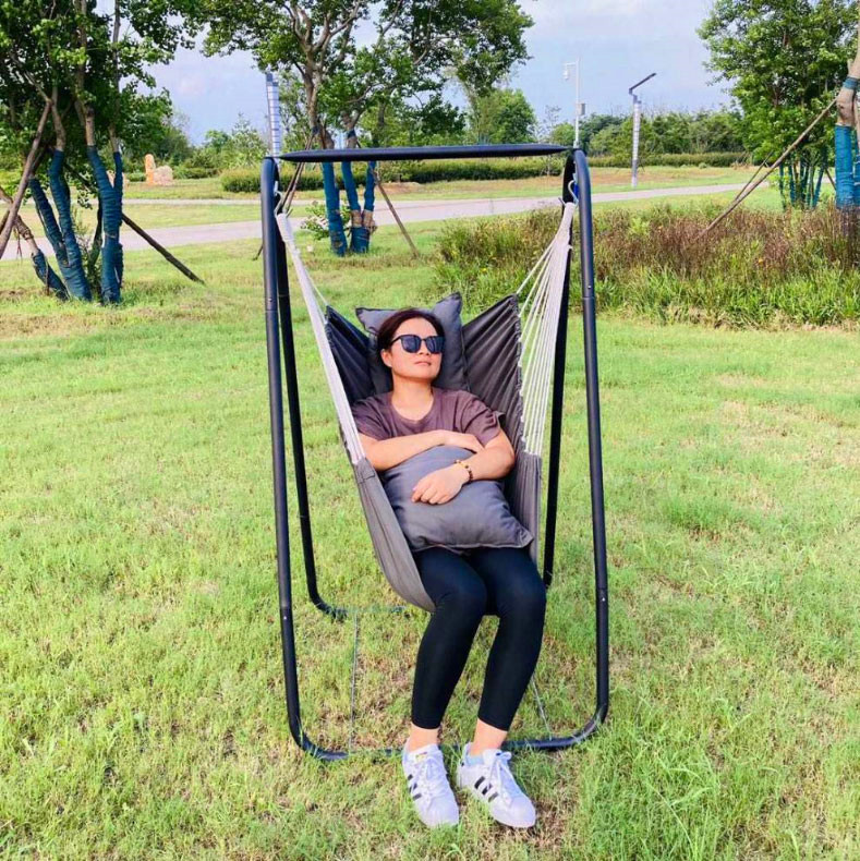 折叠双人秋千椅家用卧室悬挂吊椅靠垫挂户外躺寝室可盘腿吊床架子
