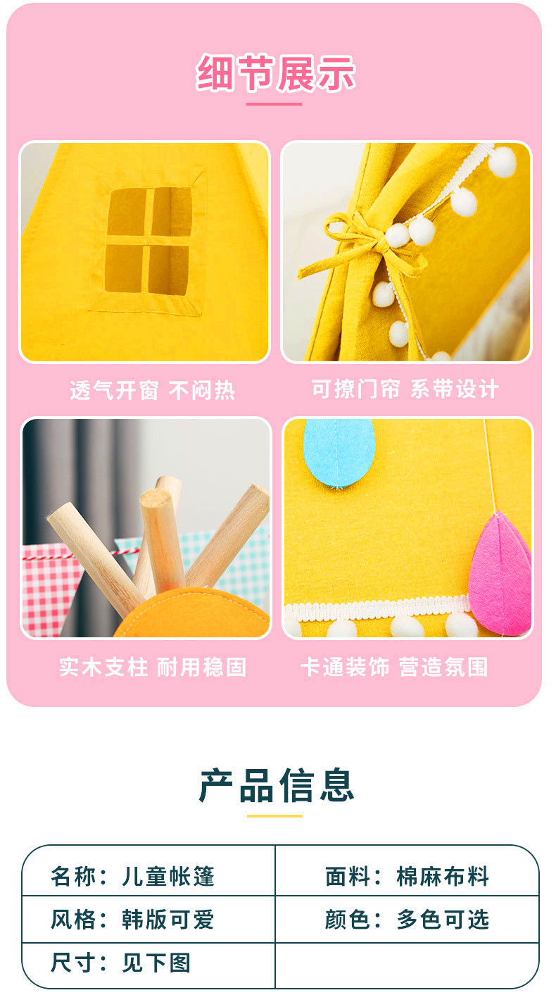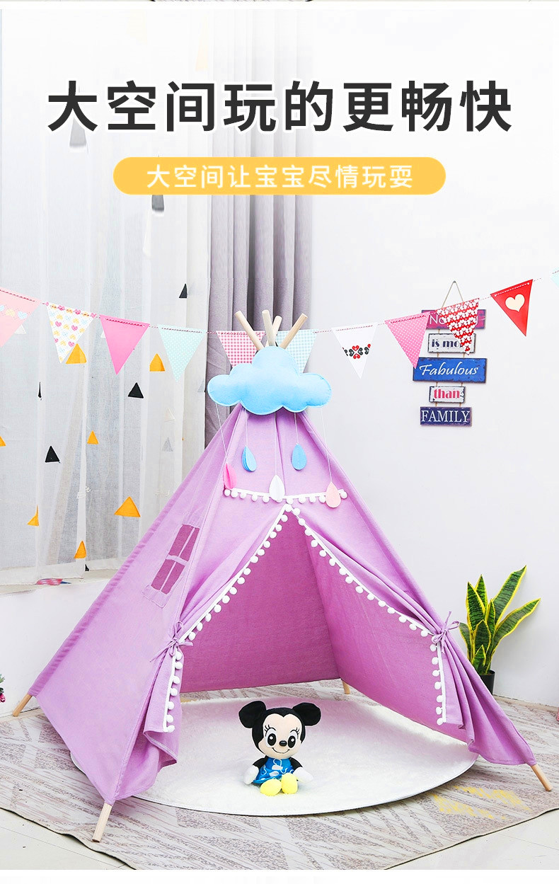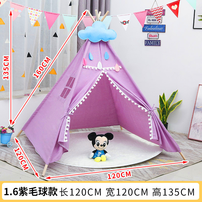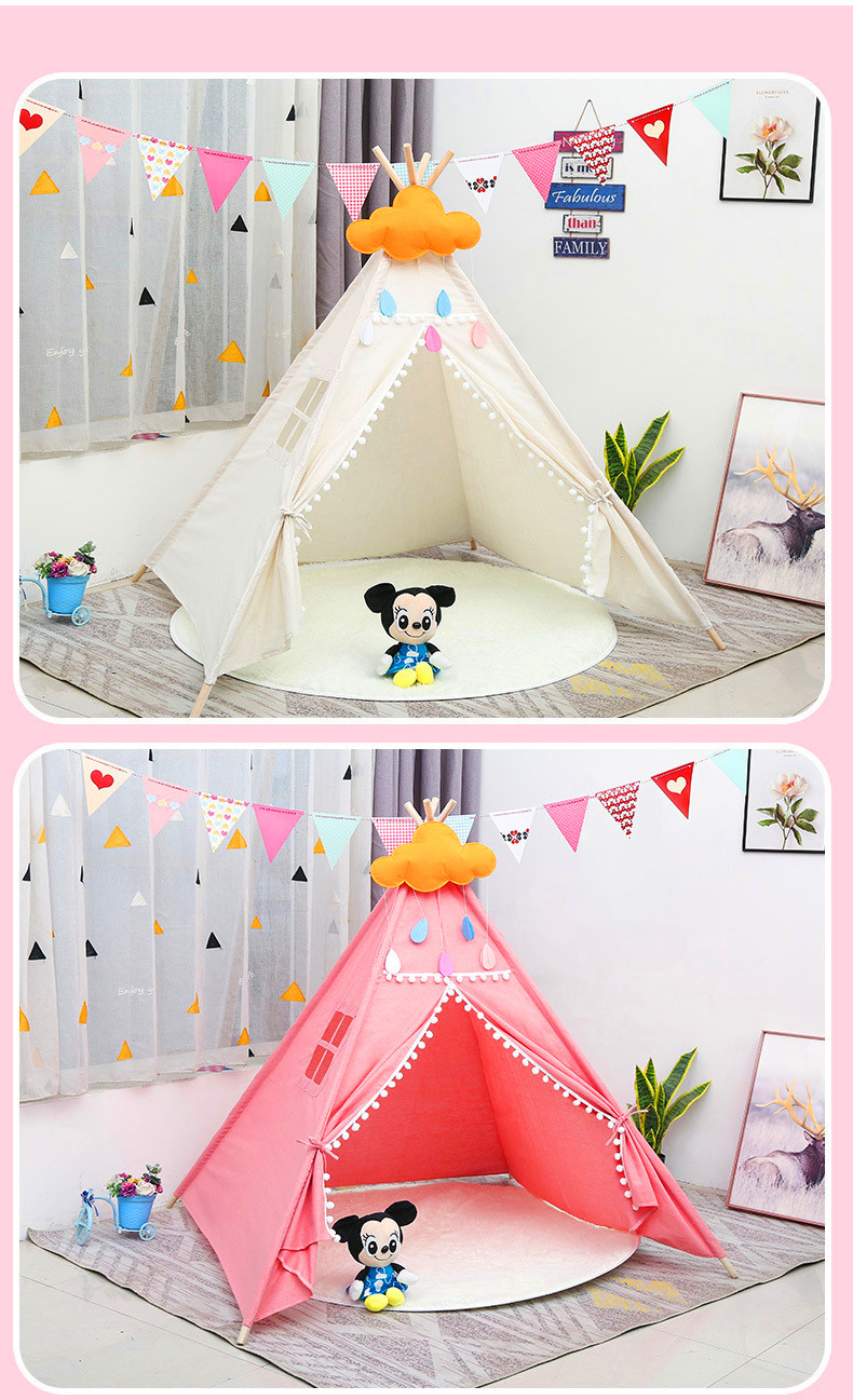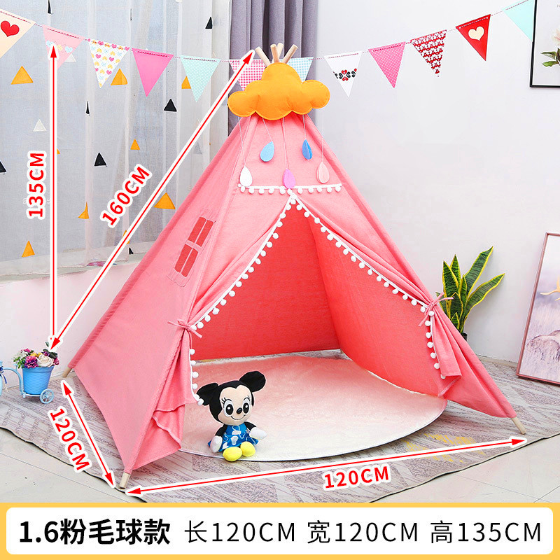 儿童帐篷游戏屋印第安流苏毛球帐篷便携式儿童室内玩具帐篷公主房