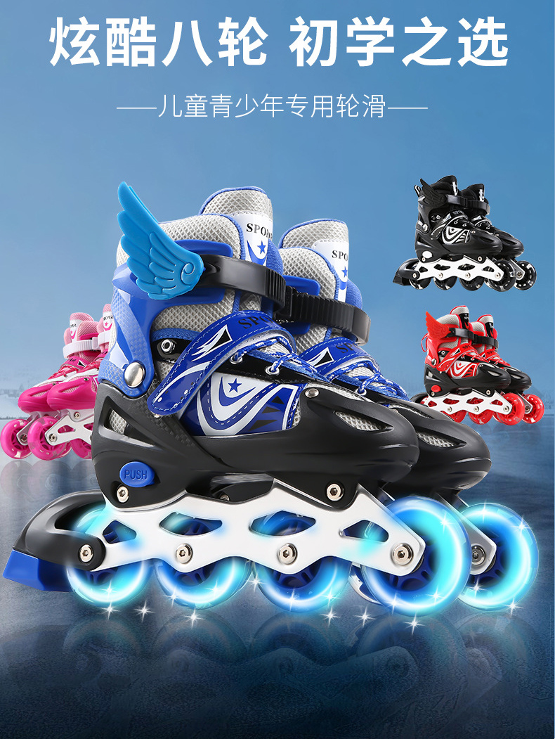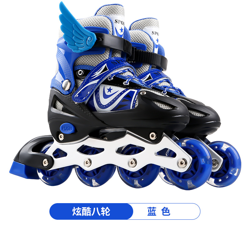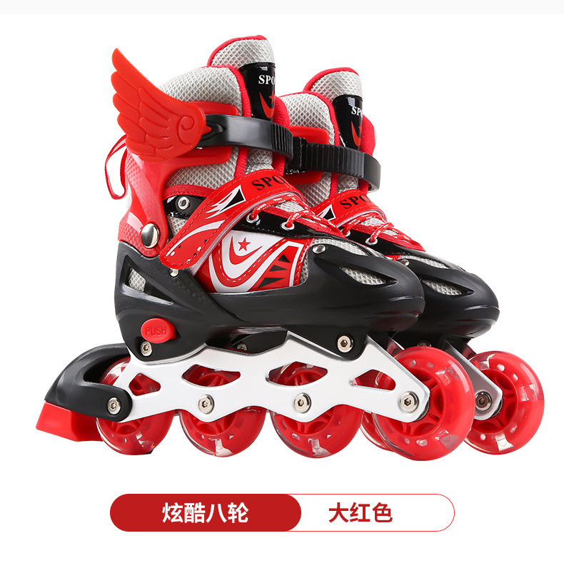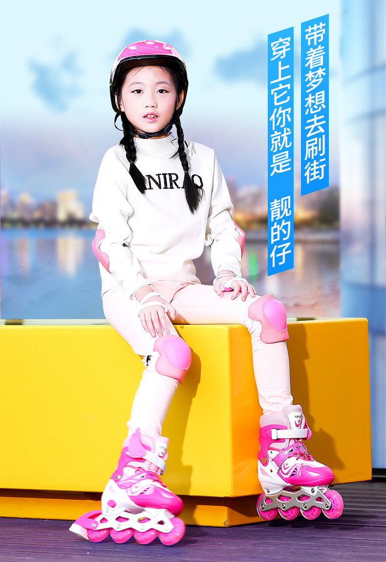 套装配置:前轮闪光鞋子一双、小扳手一对、高密度泡沫头盔一个,护具6件套(含护膝2 护肘2 护掌2),+螺丝一副,翅膀一对,路障3个。