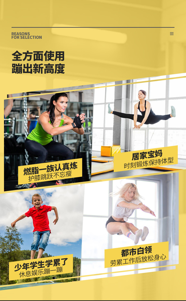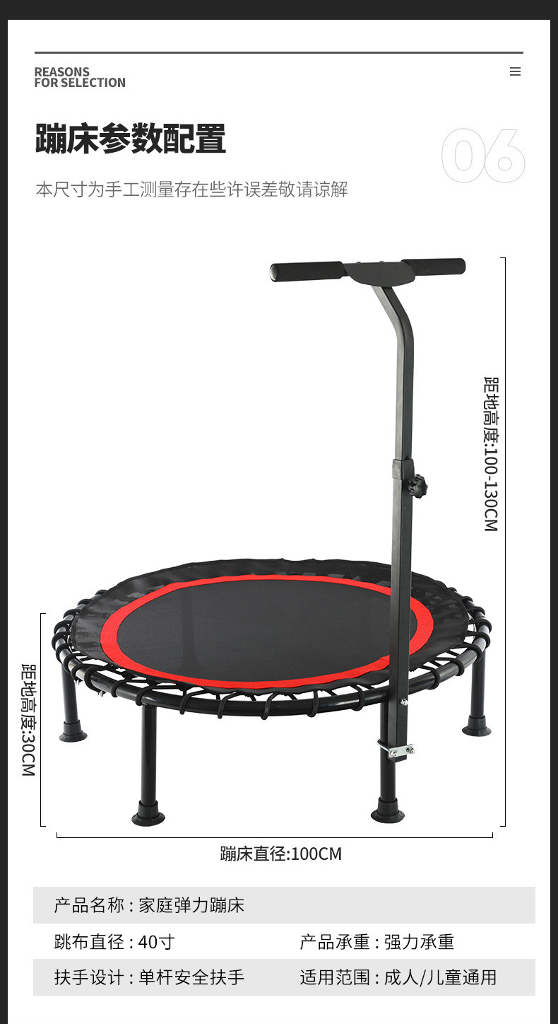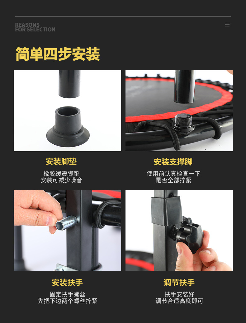 家用静音蹦蹦床批发儿童成人通用健身房瑜伽室内减肥跳跳床带扶手