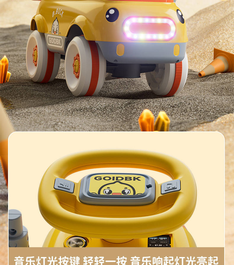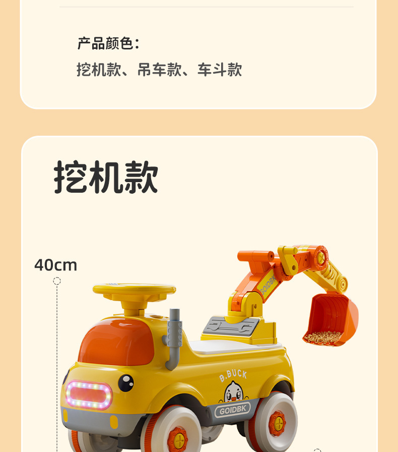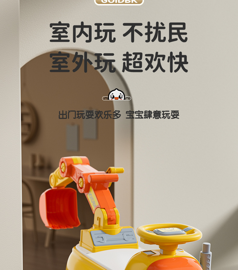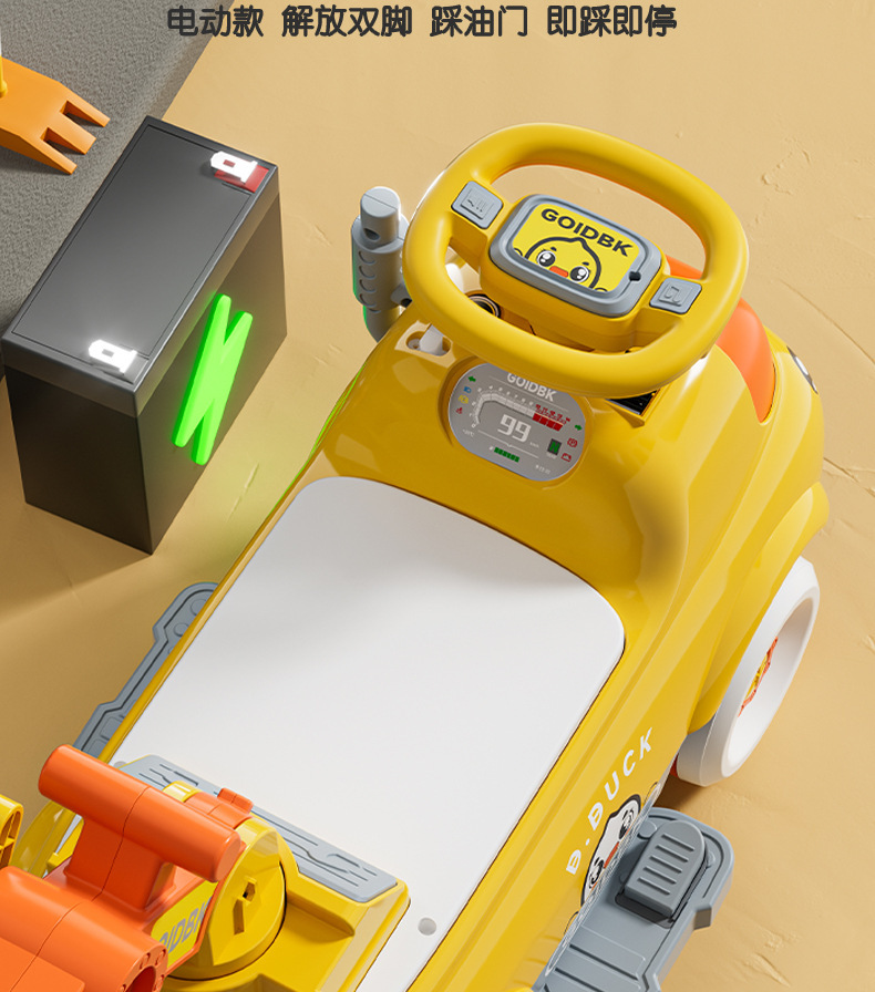 儿童工程车可坐人可骑行电动儿童滑行工程车四轮儿童钩机