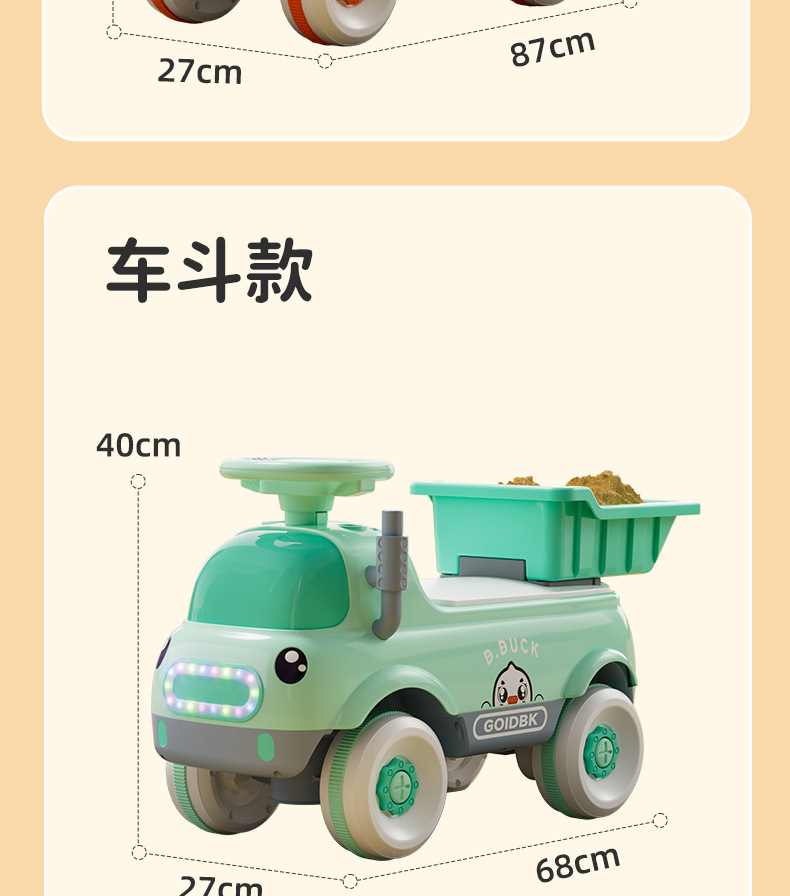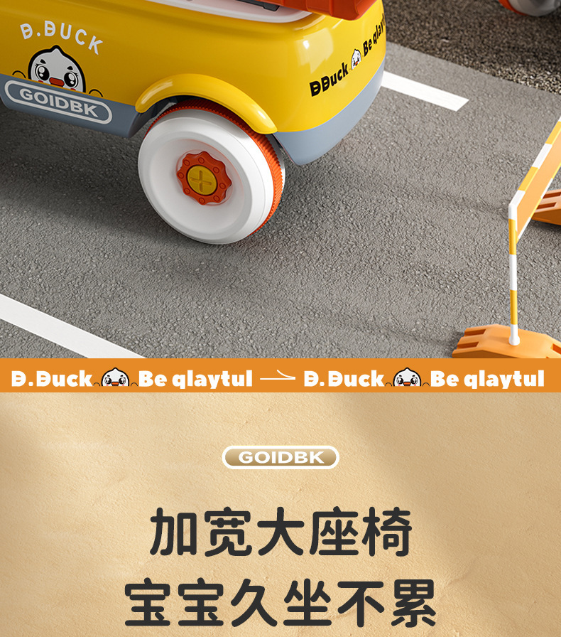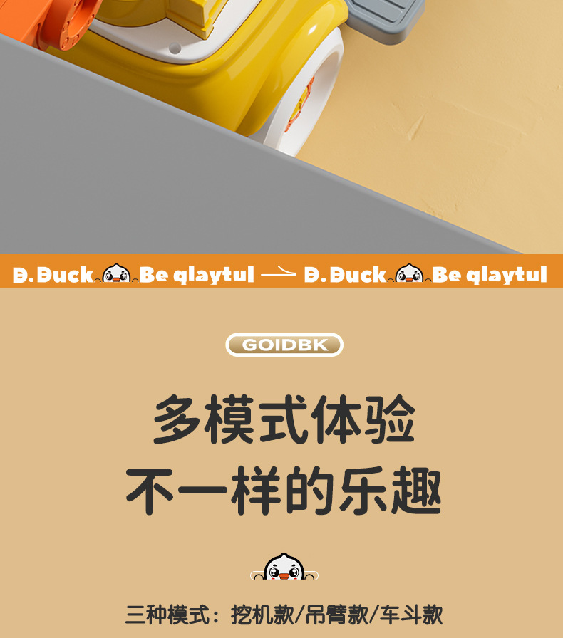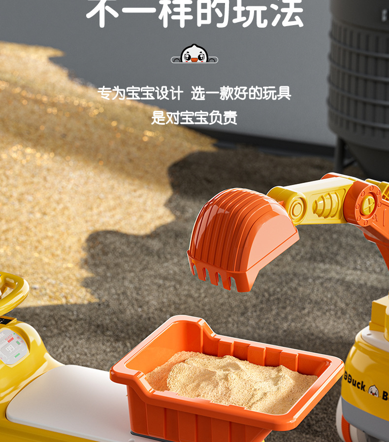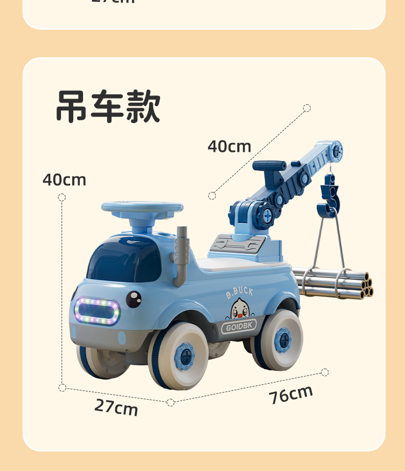 儿童工程车可坐人可骑行电动儿童滑行工程车四轮儿童钩机
