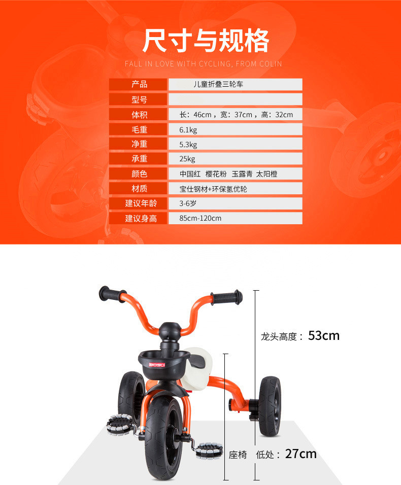 折叠脚踏车 1-3岁婴幼儿小孩童车 儿童三轮车 儿童脚踏三轮车