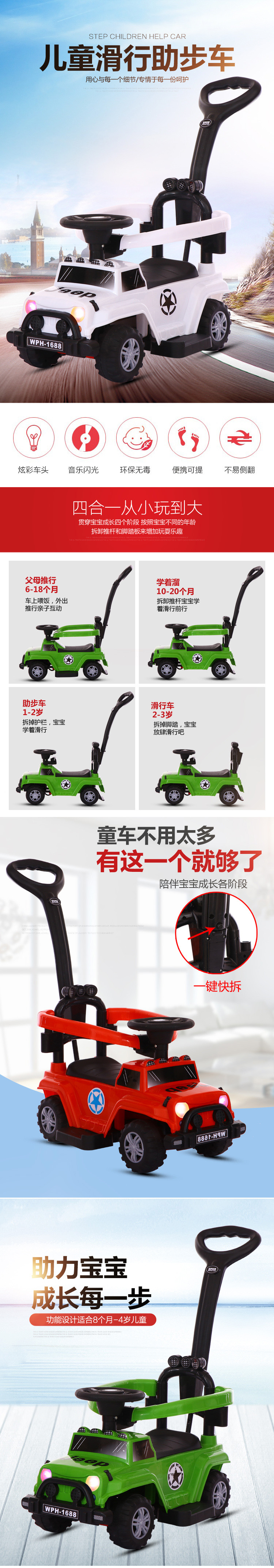 新款儿童滑行车带推把四轮扭扭车小孩宝宝多种功能助步推车