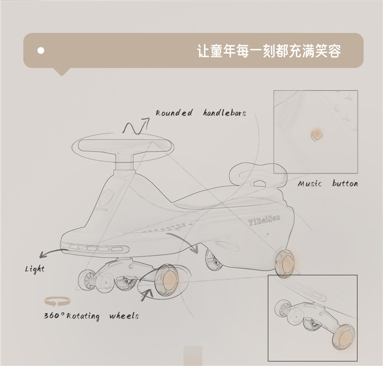 儿童骑秋千婴儿扭转车 带音乐和灯光Pu闪光轮婴儿扭转车摇摆车滑动玩具 ¥62.00