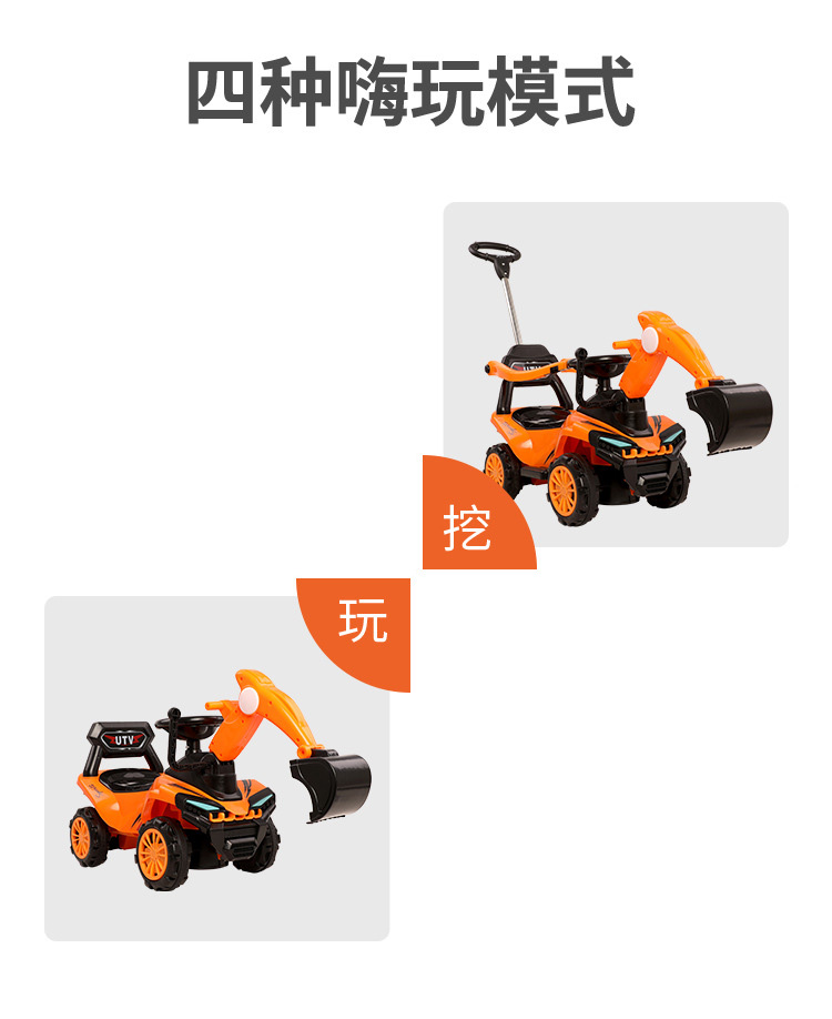 儿童滑行车四轮挖掘机可坐1-3岁2宝宝礼物工程车多种功能手推车溜溜