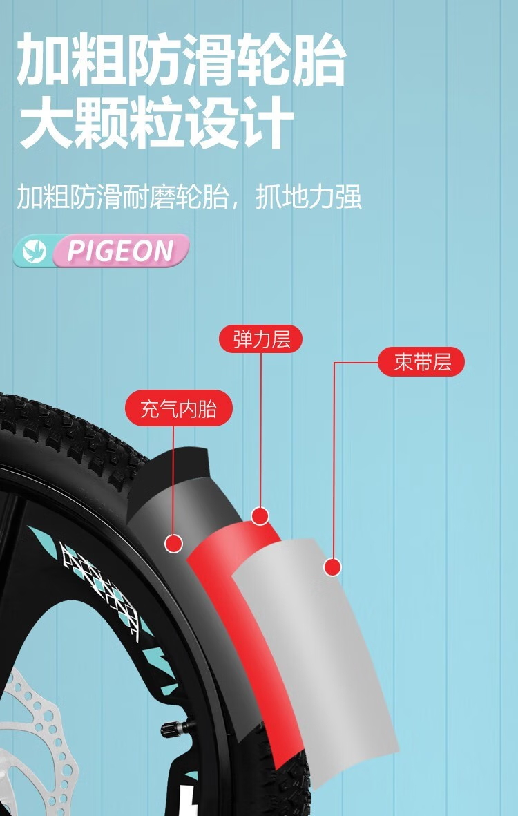 飞鸽【碟刹减震】儿童自行车6-10-15岁中大童山地车男女孩学生脚踏车