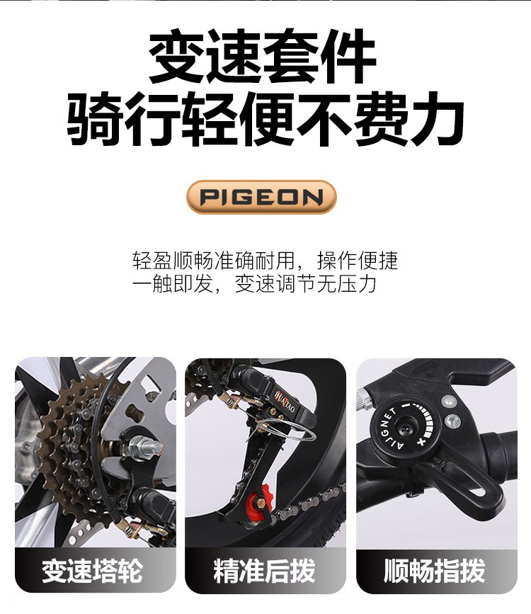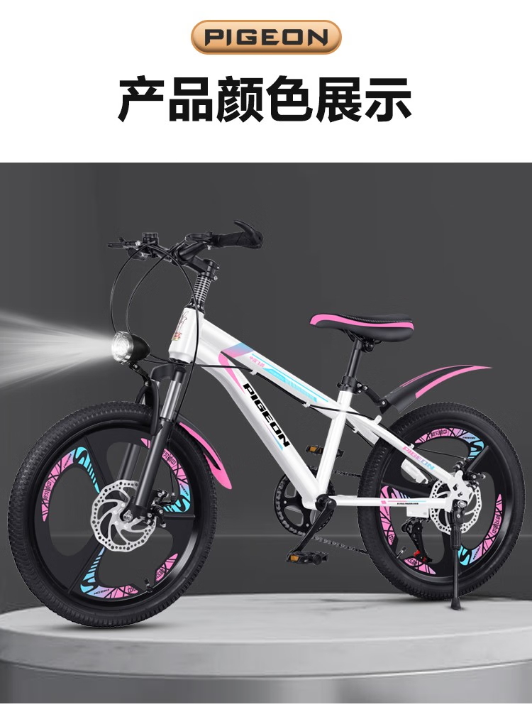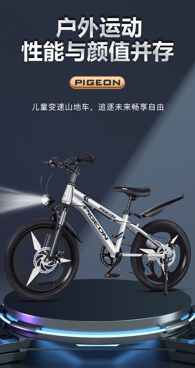 飞鸽儿童自行车6-10-15岁碟刹山地车男孩变速减震中学生女孩脚踏车