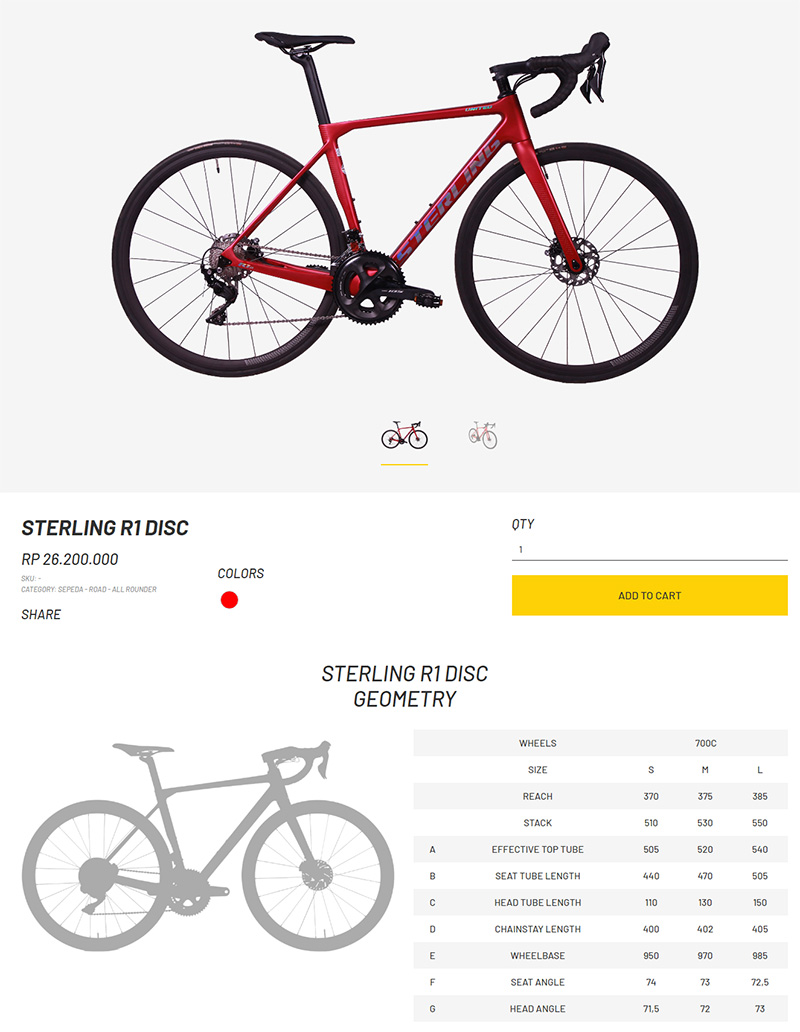 Melaju cepat bersama Sterling R1 Disc di segala medan beraspal. Dibekali frame berbahan HMC-7 carbon material dan dikomandoi groupset Shimano 105 2x11 speed, menjadikan Sterling R1 Disc sepeda all-round yang siap menaklukkan tantangan tanpa masalah berarti. Sistem pengereman Hydraulic Disc Brake menjamin keamanan selama berkendara.