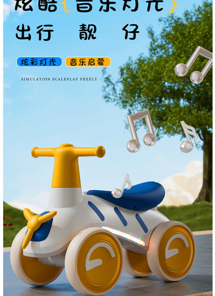 儿童平衡车1-3岁宝宝滑步车四轮防侧翻无脚踏溜溜车音乐灯光玩具